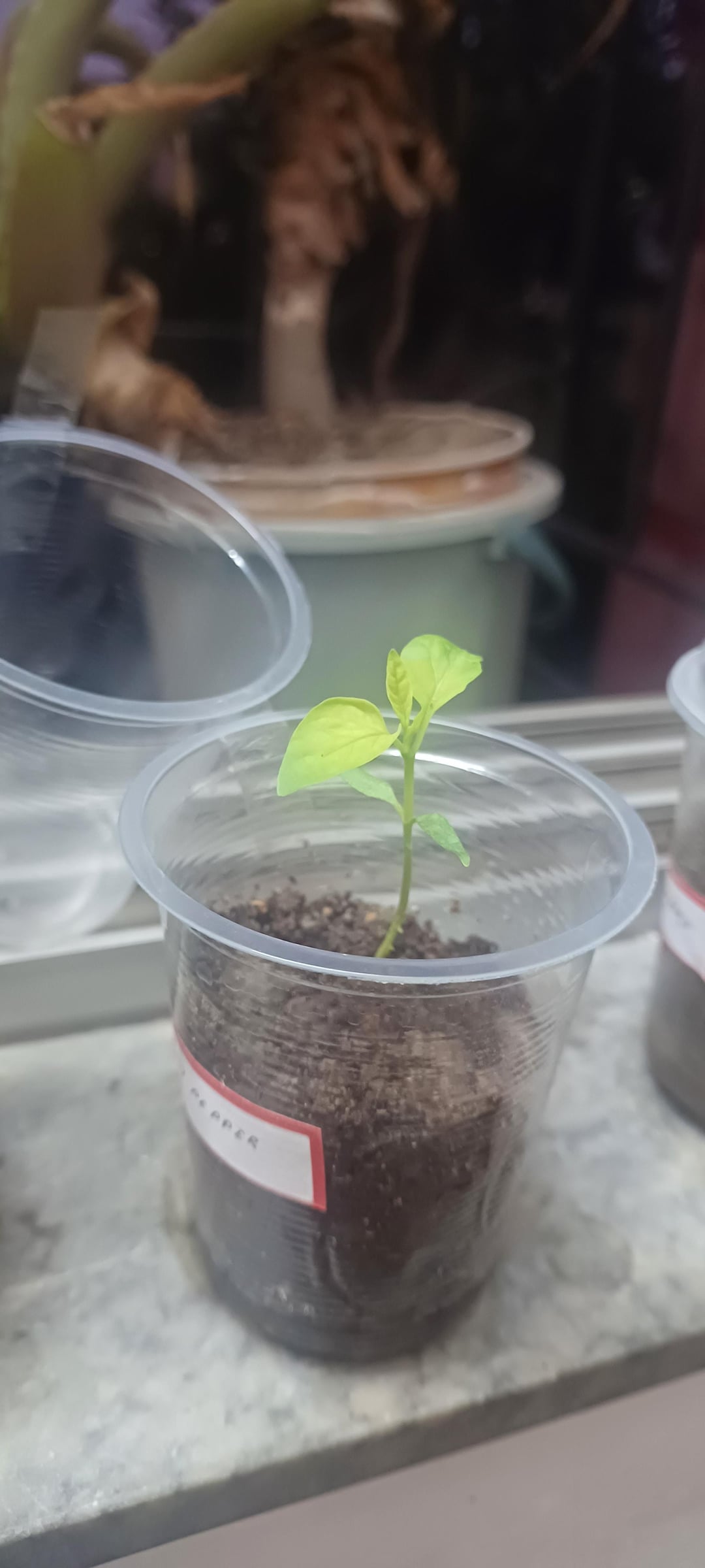Pepper went yellow cause it has no space to expand its roots. Roots grow very fast but we don’t see it. And enough water and fertilizers is not enough. I went through it this season. Why do you have half cup of soil?