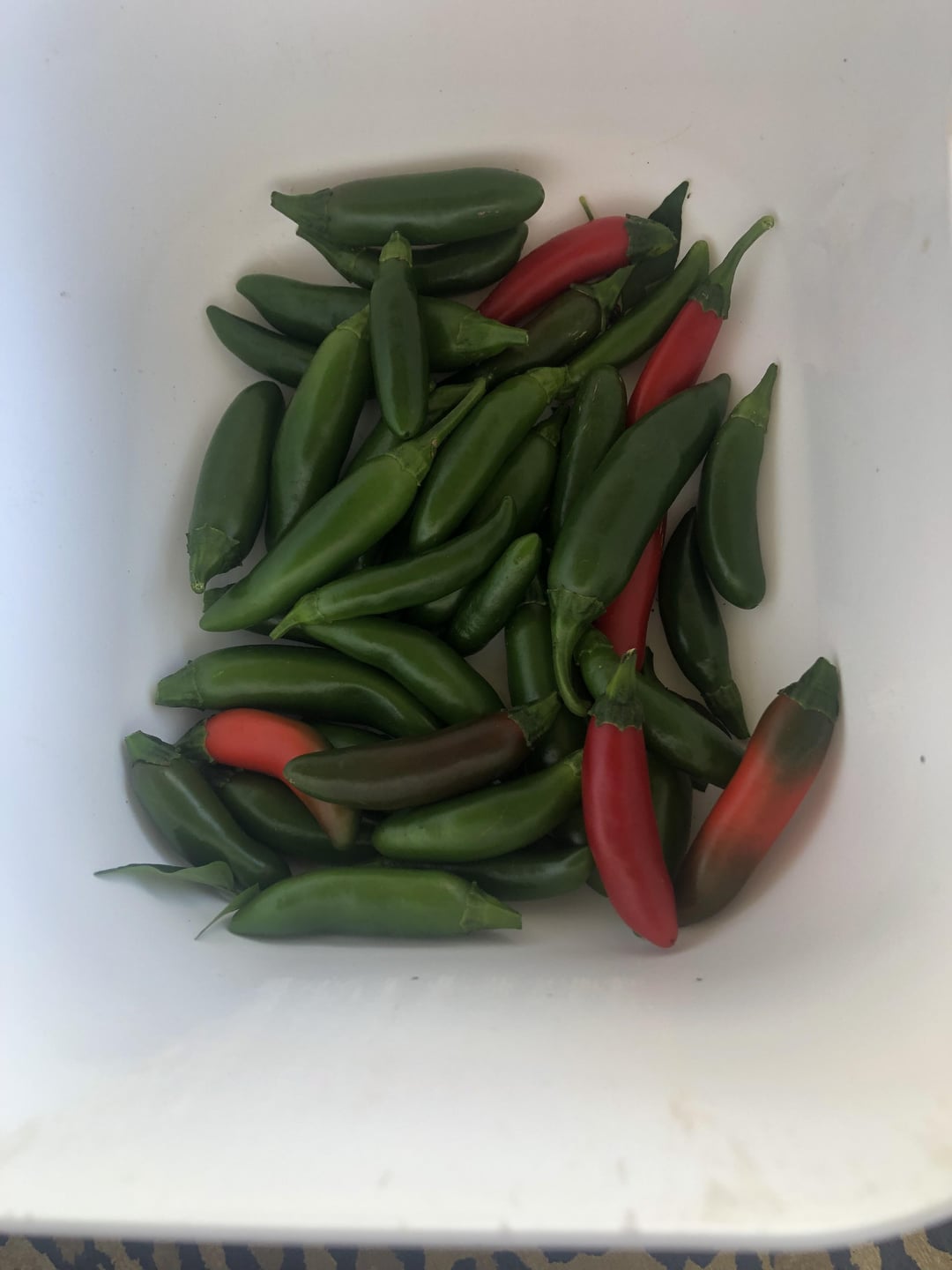 Didn’t realize I had a whole slew of Serrano peppers ready to pick! Heading out of town, so knew I needed to make some quick salsa!