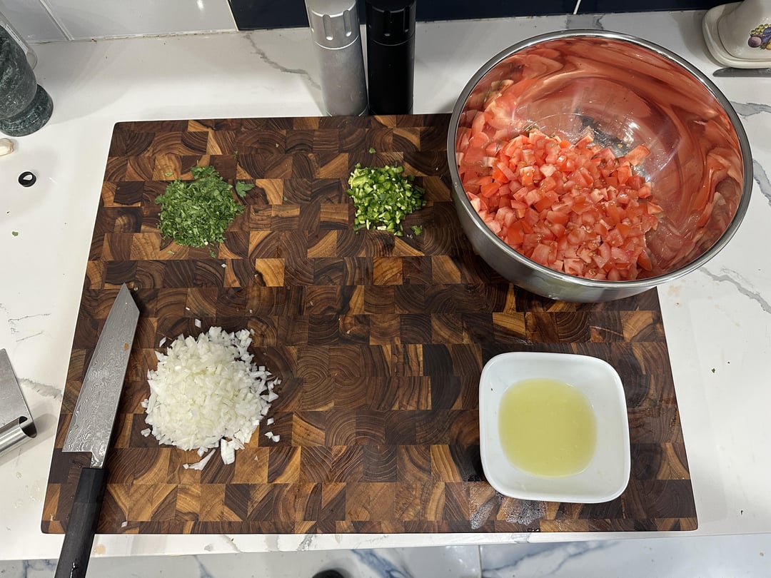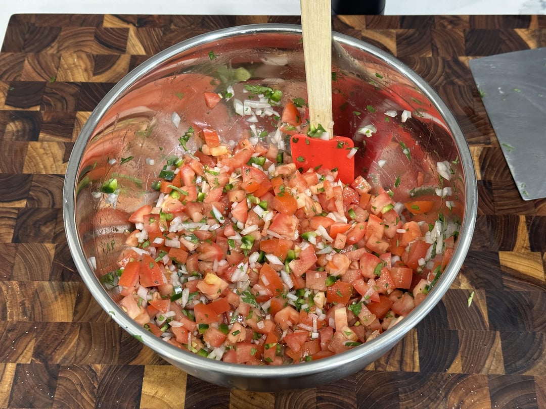 when we a recipe calls for pico i always make a bunch and then use it periodically till it’s gone. scoop out a little and doctor it up to suit whatever i’m doing with it. fresh garlic is a go-to. sometimes a touch of cumin and chili powder. sometimes i just stand at the fridge with a bag of chips and go to town.
