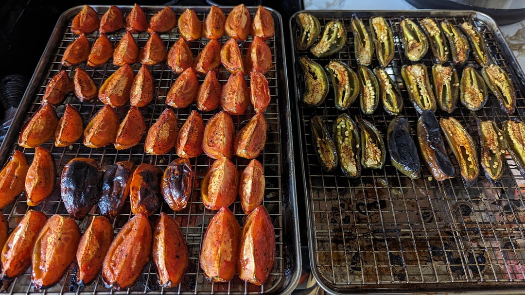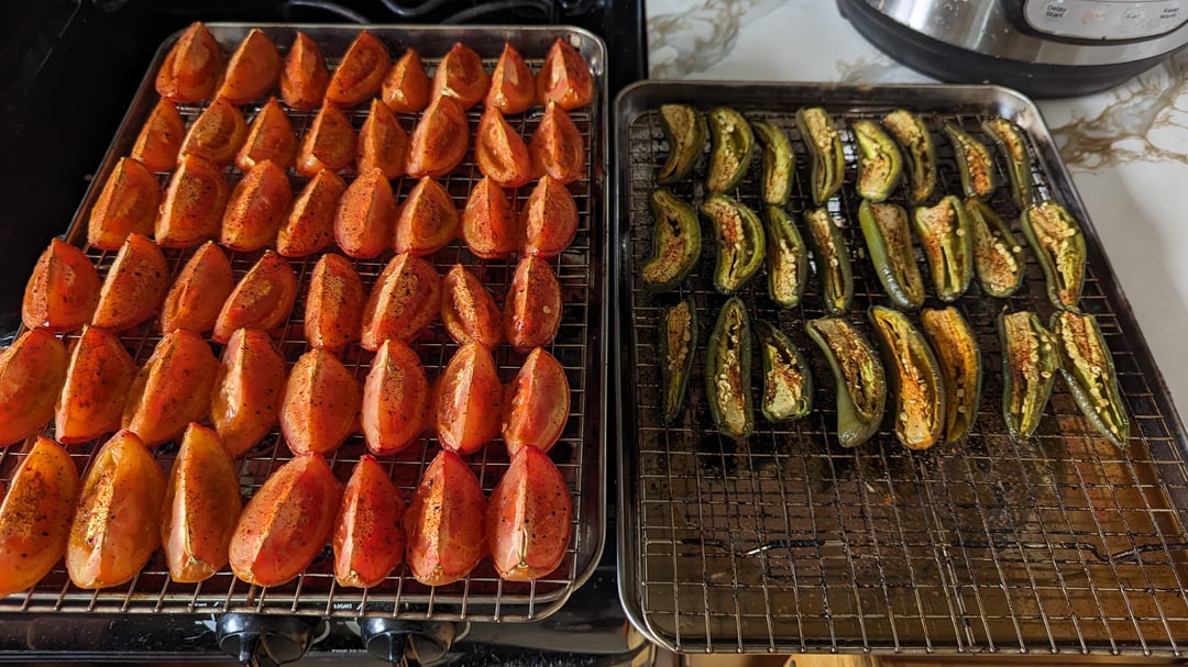 I need to get me some baking pan racks. My roasted salsa is always so mush. And they never char right.