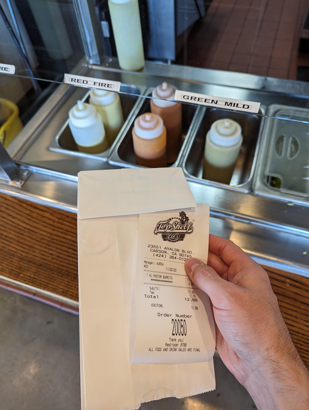 Shout out to Top Shelf Tacos in Carson CA for just automatically handing you a bag to carry all your salsas bar selections in