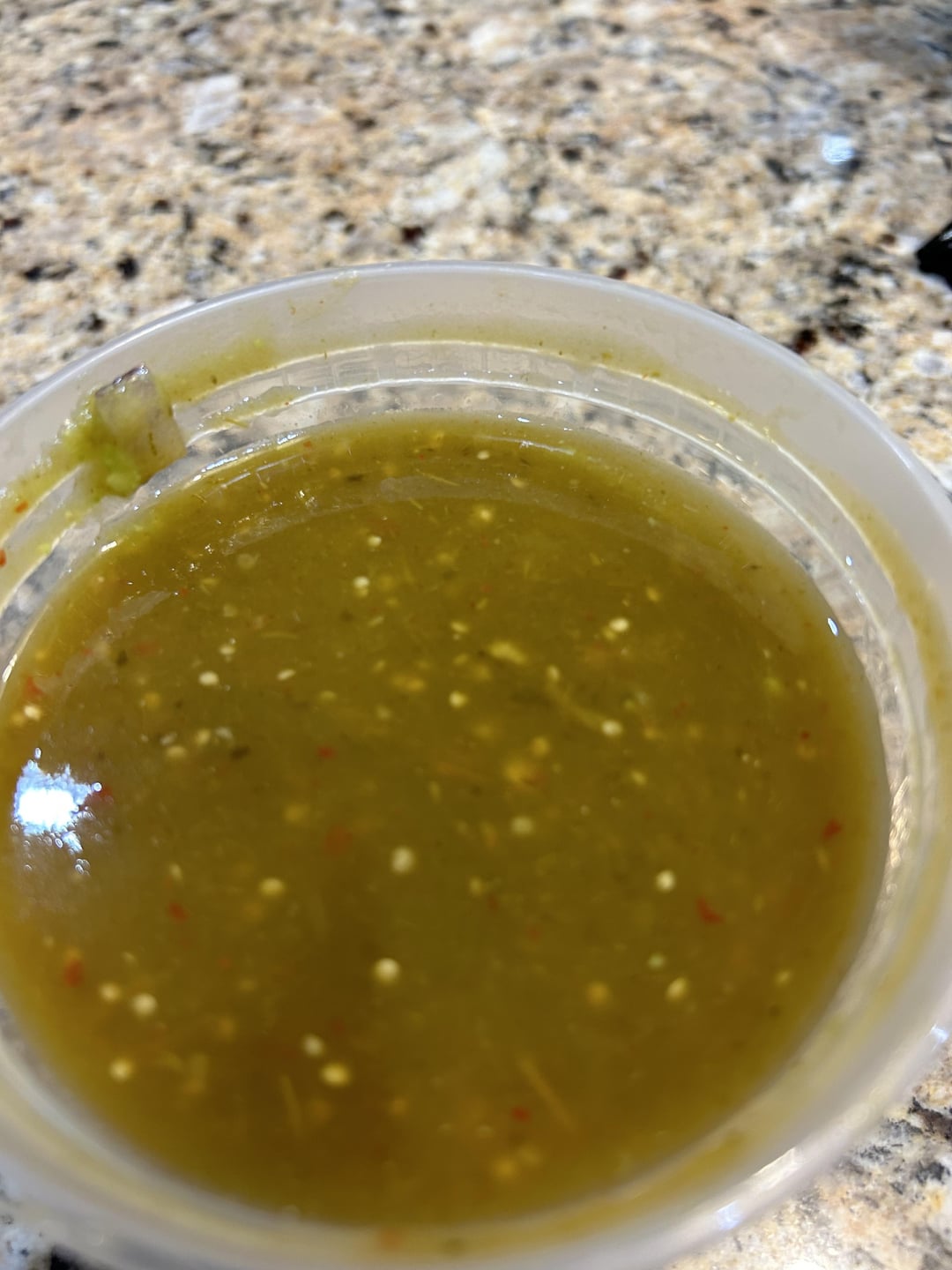 I buy this tomatillo salsa at the local Mexican market/meat market. It’s awesome. Very silky smooth and not too tart.