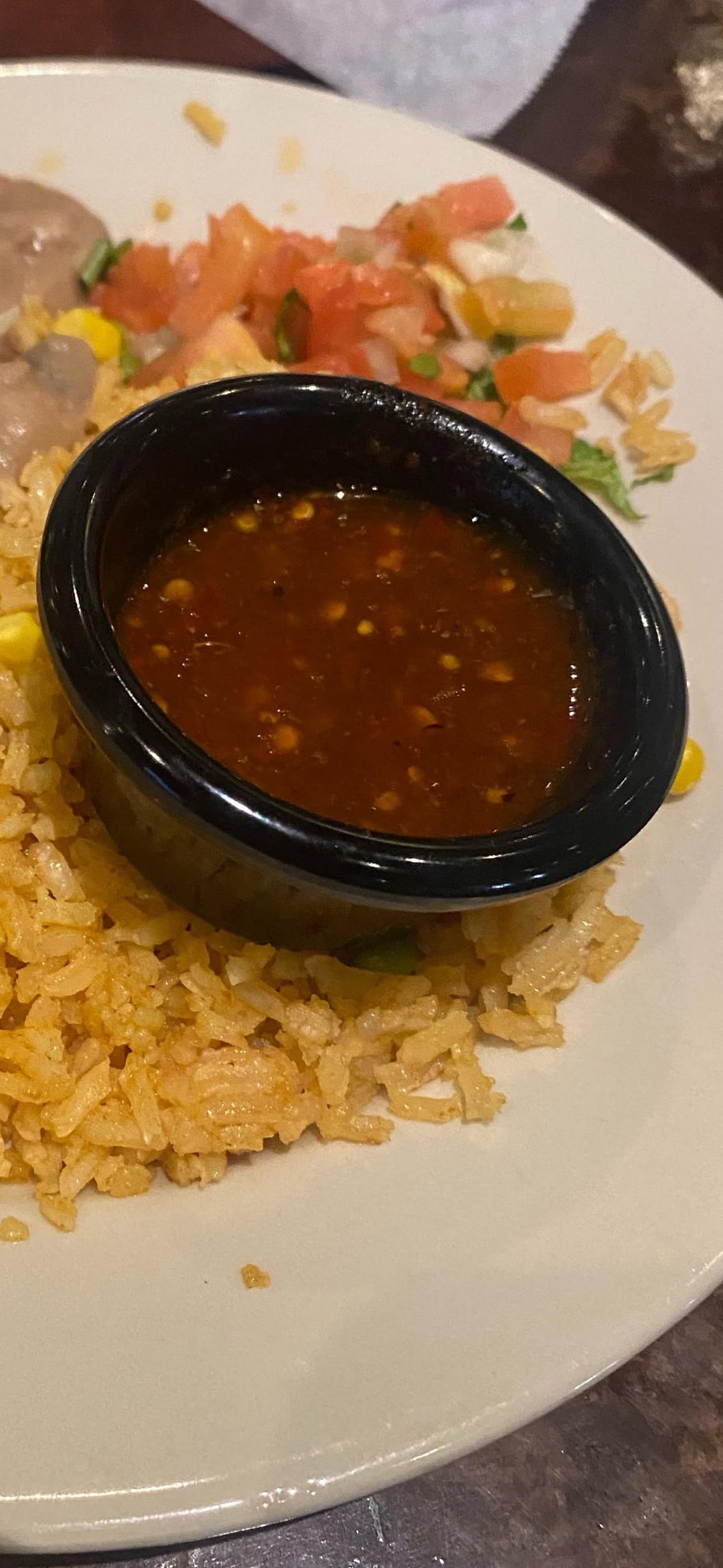 It’s a deep red color, pretty spicy, and this restaurant serves it with their tacos, carne asada, etc. It’s top 3 salsas I’ve ever had, and I would love to make it at home. The flavor is amazing.