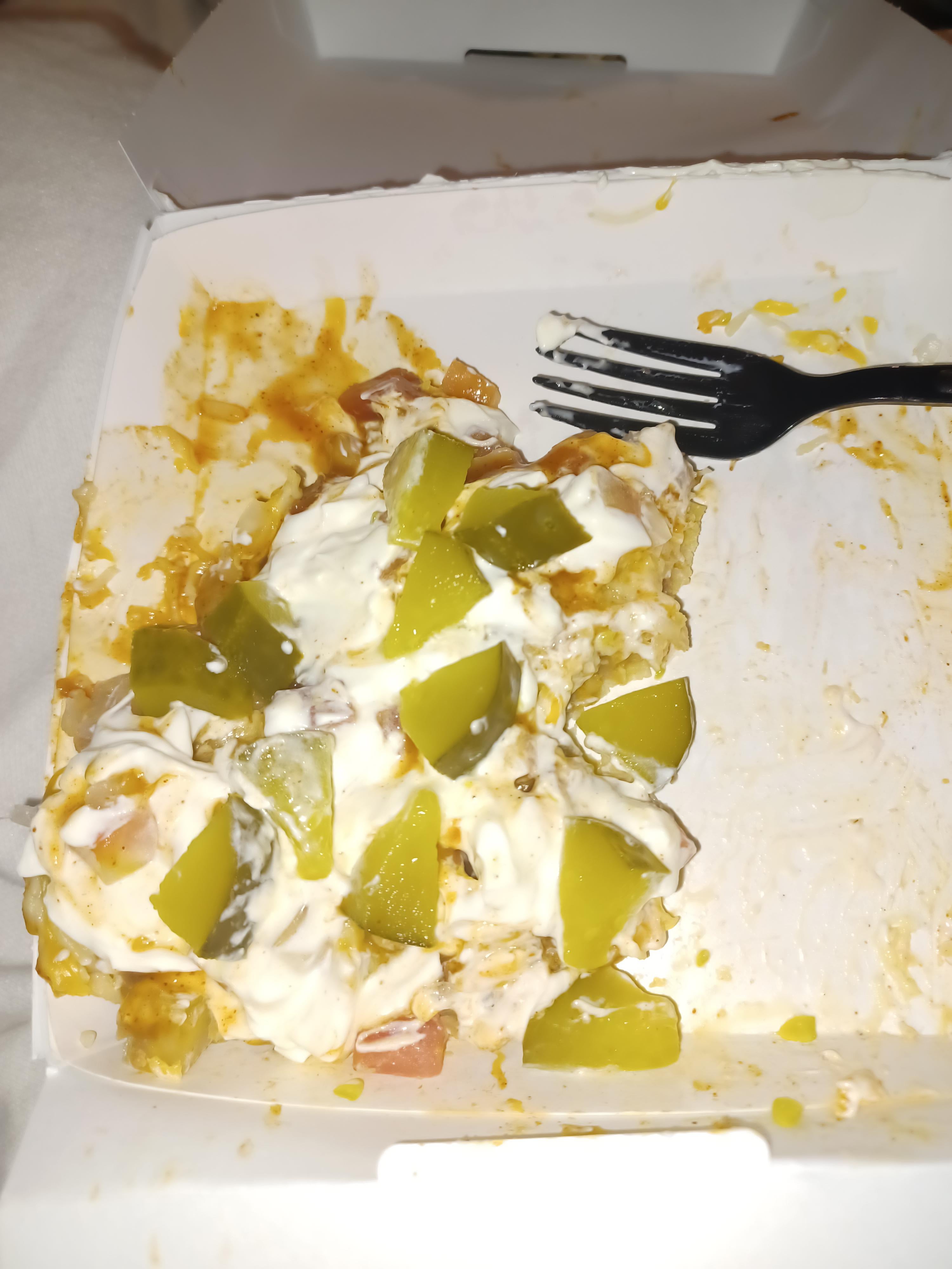 I thought I’d try it bc I love pickles. I ordered extra cheese, 3 cheese, sauce, add rice, and jalapeños.(I promise the other stuff is there you just can’t see it for all the pickles and sour cream lol) (Slathered in sour cream from home…then I got the bright idea to dice up some dill spears n OMG soooooo good!!!! (I also added them to rice and bean burrito and I’ll Def keep adding pickles!!!
