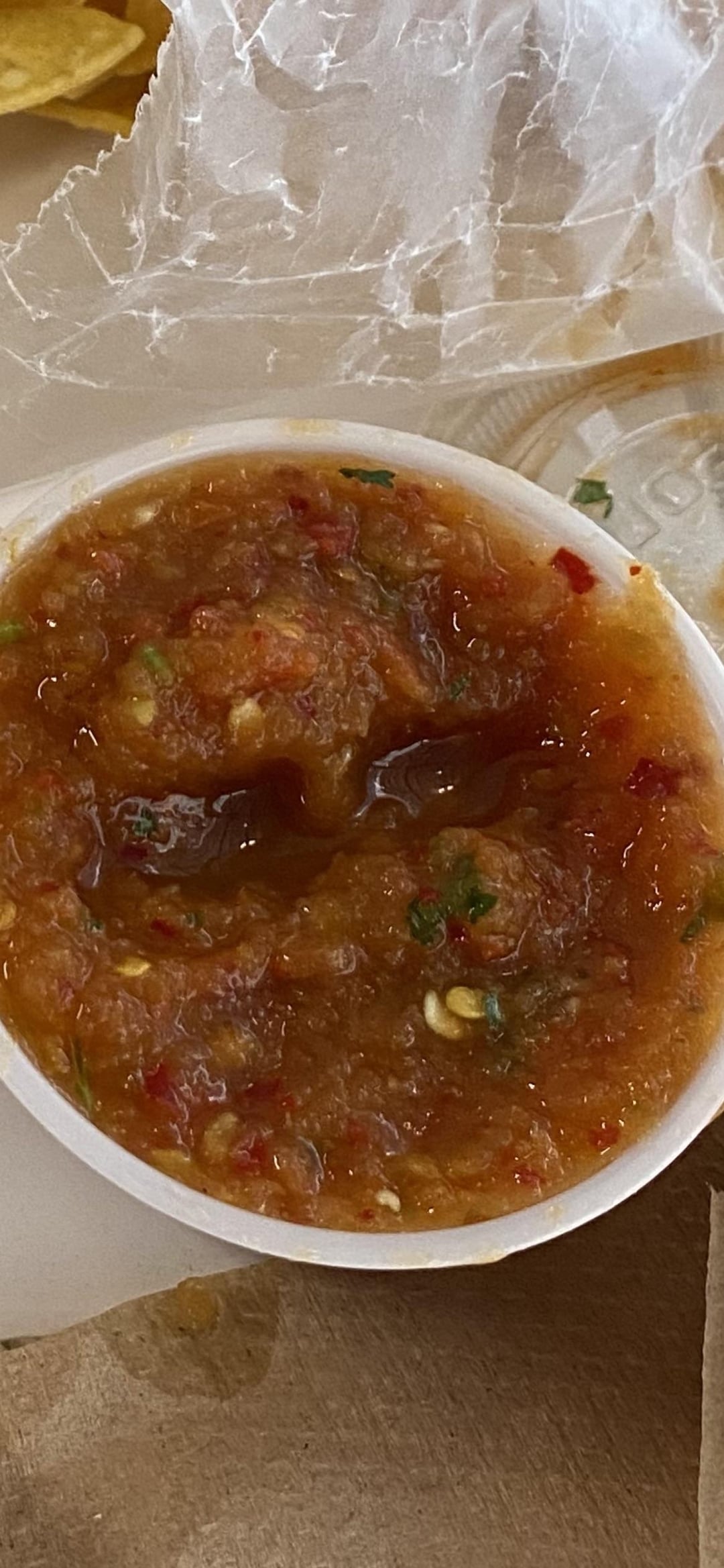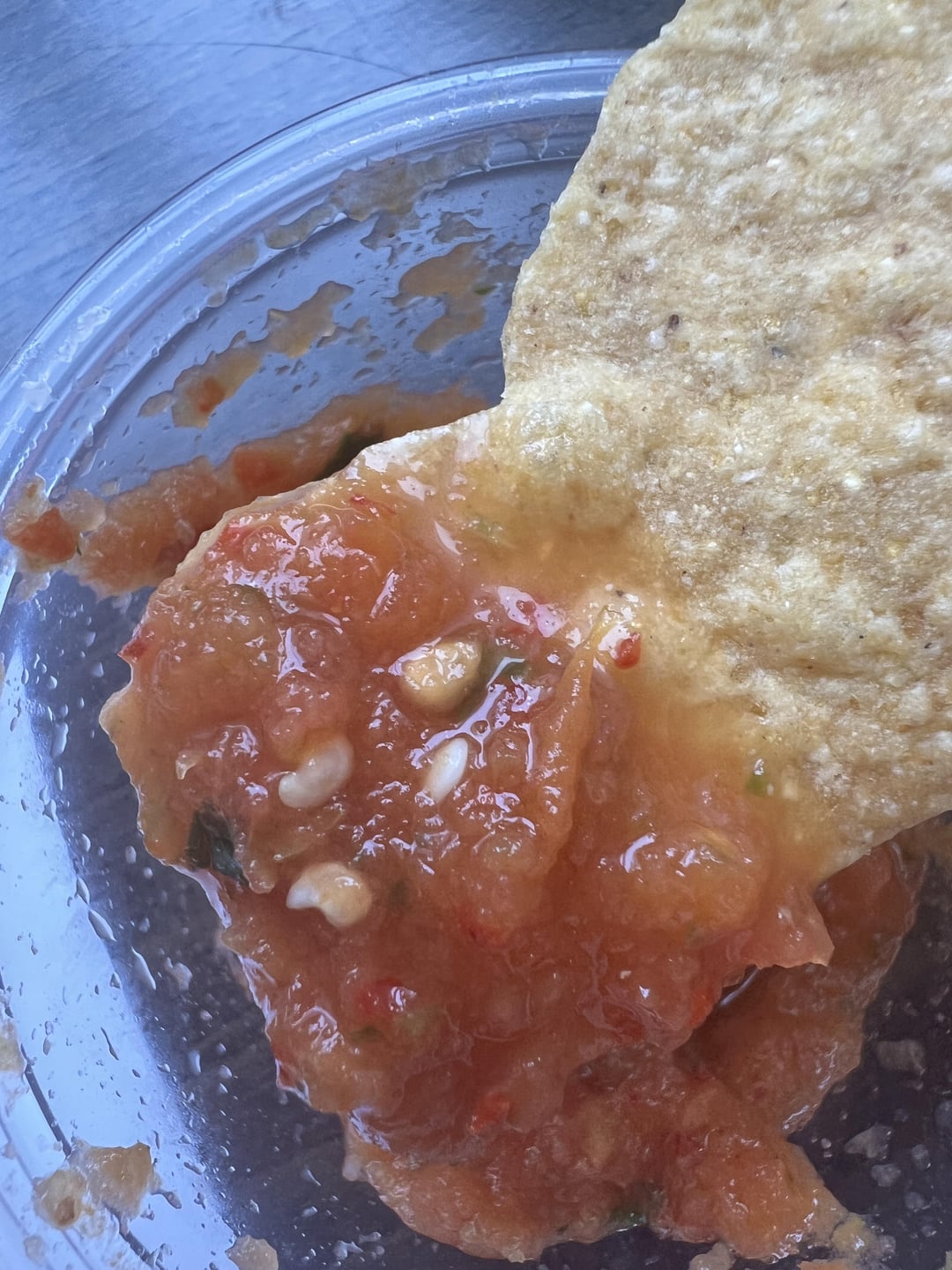 There’s chili flakes in there I see, the most likely is dried chili Arbol, it has a unique taste and adds 🔥. I don’t believe this salsa has any fresh peppers IE no jalapenos and no Serrano, or maybe just like one. But the majority of the heat comes from the dried chili flakes.