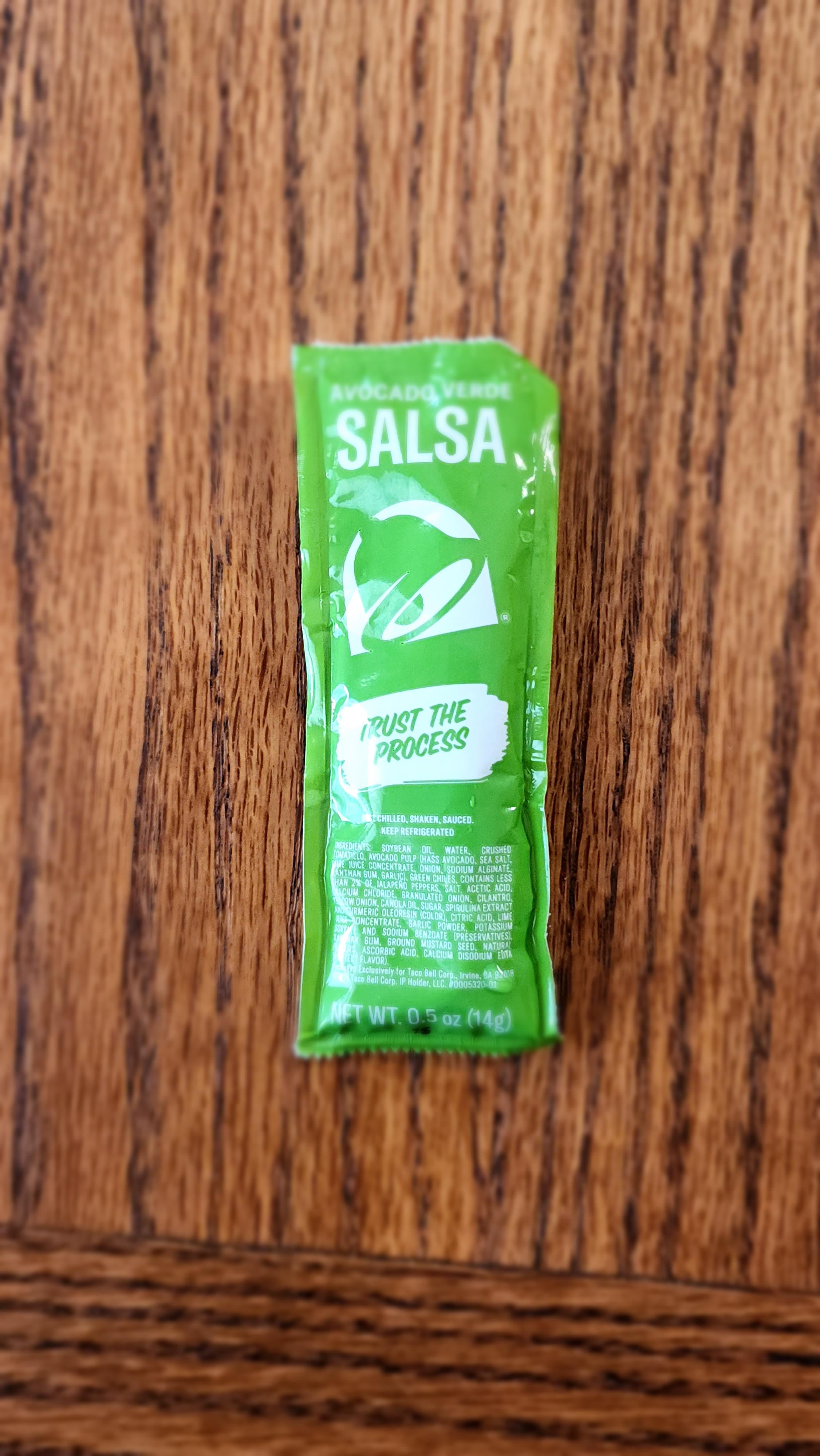 Review: the sauce itself was fine. It had like a dreamy smoky flavor if that makes sense but… Compared to the original Verde sauce, no comparison. Taco bell just needs to bring back the old salsa. I miss the tangy flavor. I still get sad when I think about how they discontinued it.