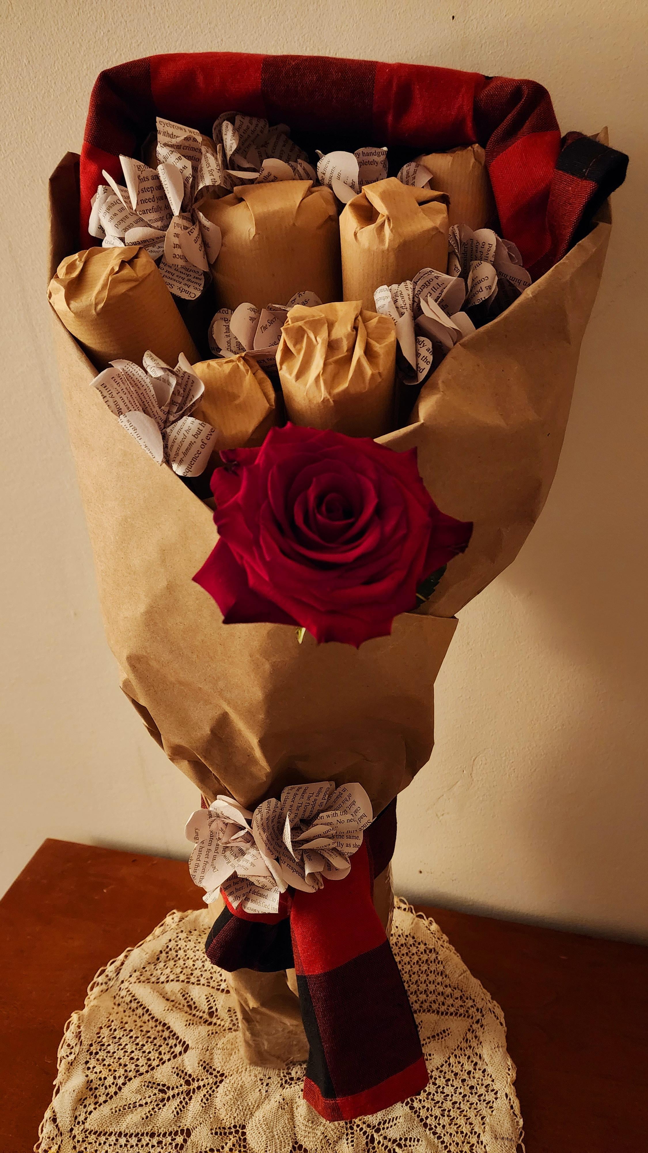 My hotsauce loving librarian friend just got promoted to running her very own library. I wanted to surprise her with a bouquet of local artisan homemade hotsauces. Everything from a light lime peach to a dangerously spicy super ghost pepper, there are 10 different sauces packed into this baby. What do you guys think?