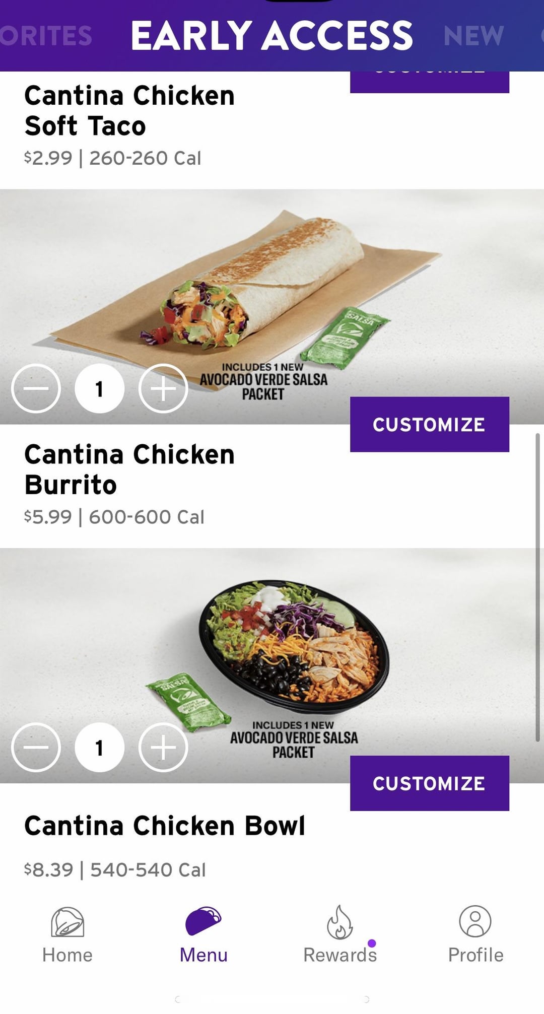 The cantina tacos at Taco Bell for me are $3.99 each, whereas at Chipotle I can get three for $9.35 and again, load up with as many other ingredients as I want for no extra charge. And in this case, even the most expensive protein (steak) is only $11.10, so it’s still cheaper than Taco Bell. There’s just zero reason for me to even try the cantina menu at Taco Bell unfortunately. It’s just wild what the prices are like now.