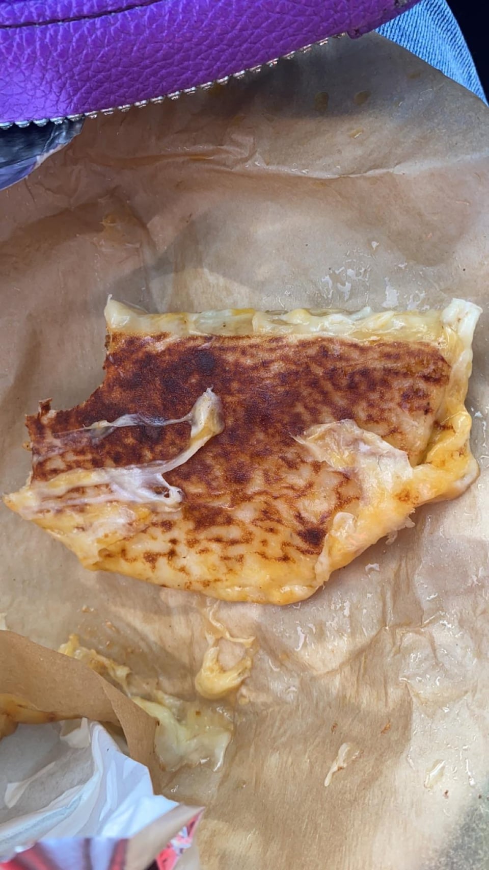 So cheesy but it’s kind of weird it’s just a regular taco shell with cheese all over it like the grilled cheese burrito or fries. The chicken is so much better then grilled strips. I am big into the shredded chicken they used to have so this is such a nice option.