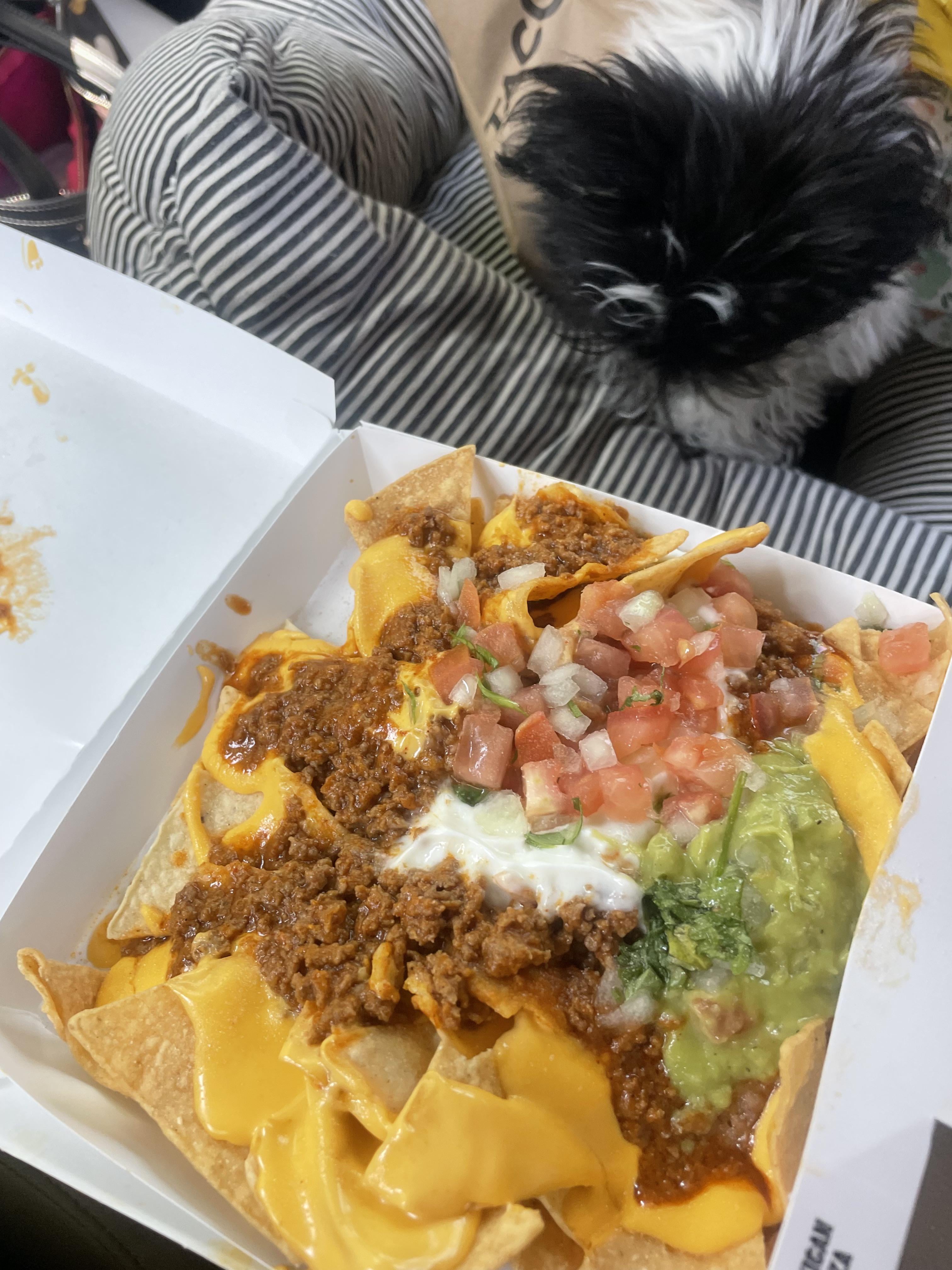 Great $5.29 nachos!!! Extra beef and cheese, add pico