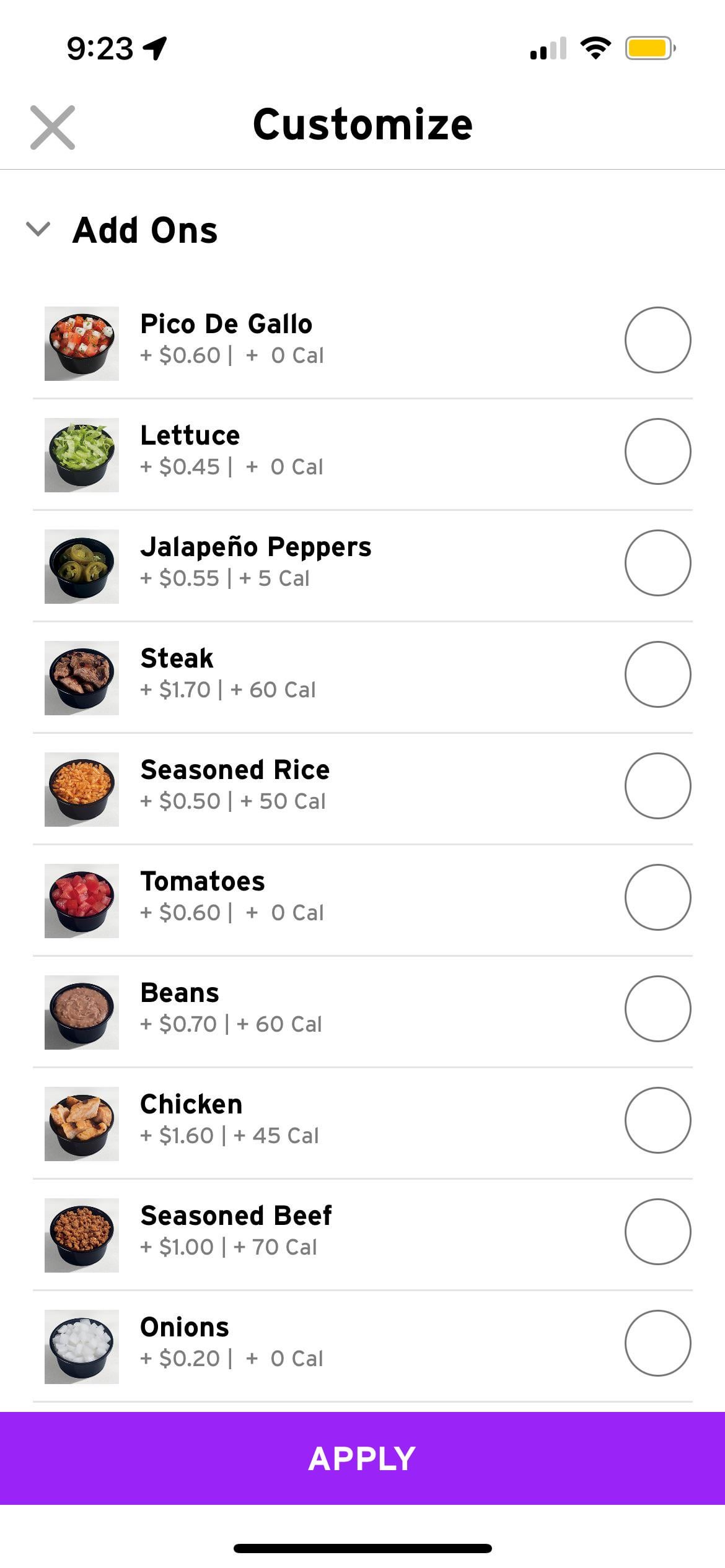 Am I the only one that thinks some of the pricing for the “add-ons” to items is ridiculous? Especially for some of the more standard/healthy options like lettuce, onions, tomatoes. I understand how crispy strips or additional proteins or potatoes would deserve a decent charge, but I think some of the more “typical” ingredients, especially cheap veggies, should not be such a high cost. (Dare I say “free”). To make a cheesy bean and rice burrito customized the way I want it would cost more than the default burrito itself! And geez, the only free sauce / salsa now is Mexican Pizza sauce. And to add “extra” of an ingredient that comes standard on a menu item always costs more, but removing it or getting “less” when customizing doesn’t make the item cost any less.