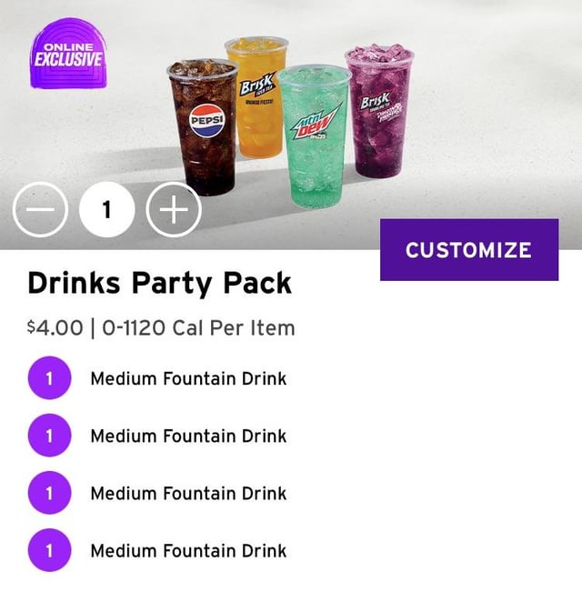 So my sister and I went to Taco Bell and the cheapest option for drinks (since we weren’t ordering combos) was to by the 4 pack of medium drinks for $4.