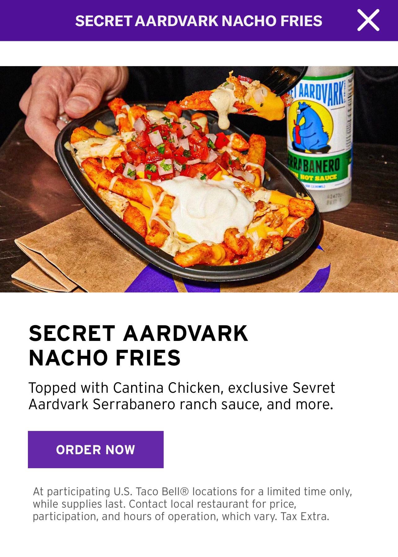 I’m not really sure what a “sevret aardvark” is, but it’s in their app and apparently no one at TB noticedby Simondidntsaygo taco bellWrite A CommentYou must be logged in to post a comment.