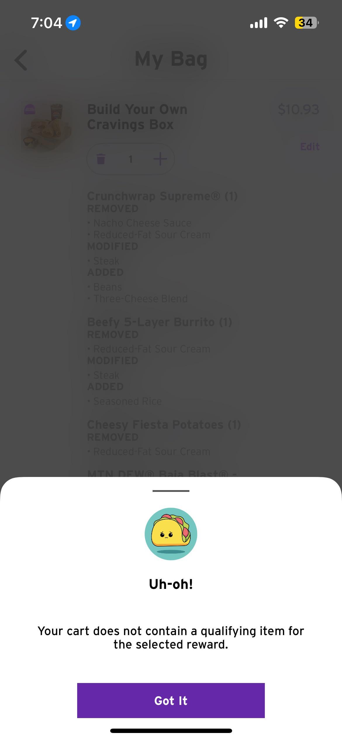 I saw the deal where you buy a 5$ item and you get free delivery on the app, but when I added it to my order and tried to checkout, it told me that no qualifying items were the the order. Is it bc I have other items in my order????by DatKidBrandon taco bellWrite A CommentYou must be logged in to post a comment.