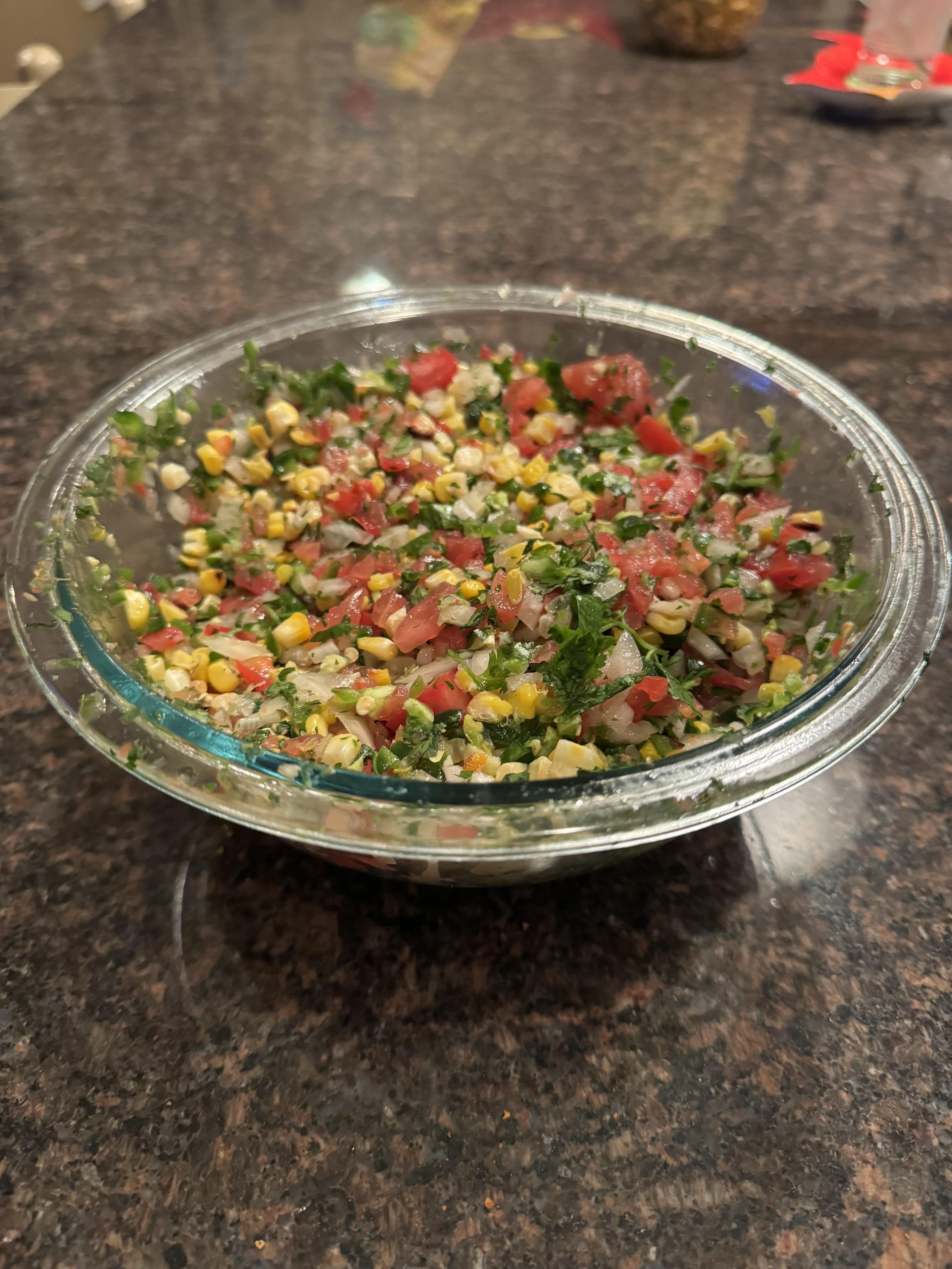 1 tomato, 2 ears of corn roasted on the grill, 4 jalapeños, 1 small white onion, a lot of cilantro, and some saltby Braves_Fan96 pico de gallosalsaSauceWrite A CommentYou must be logged in to post a comment.