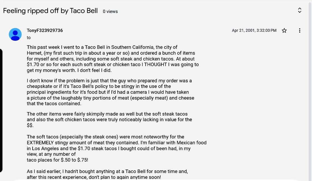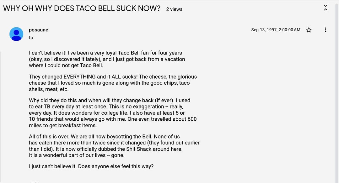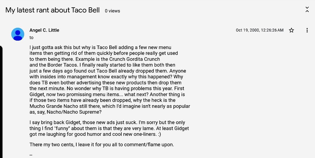 What People Were Saying About Taco Bell in the 90-2000s?by Djf47021 taco bellWrite A CommentYou must be logged in to post a comment.
