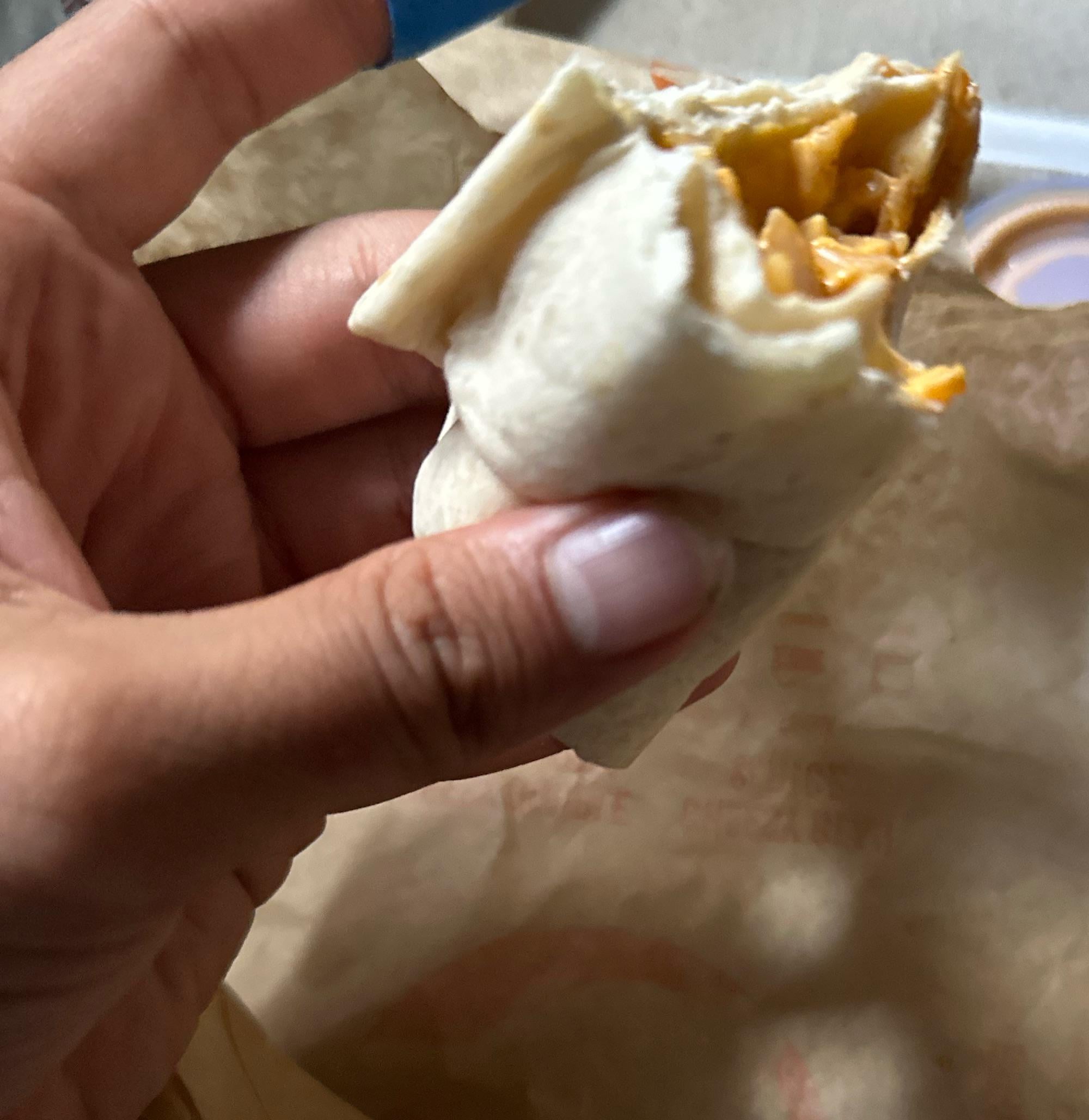 So I ordered a rice and bean burrito with no beans and the burrito came almost empty. I don’t think this is acceptable and this is why you guys have a lawsuit against you guys for the items not looking like the picture come on now I’m eating more tortilla then fucking rice