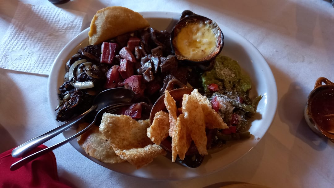 It's bullfight themed. Very traditional. Excellent food we shared the parilla. I had Waldo de res . I was on and off the toilet all night. Well worth it though.