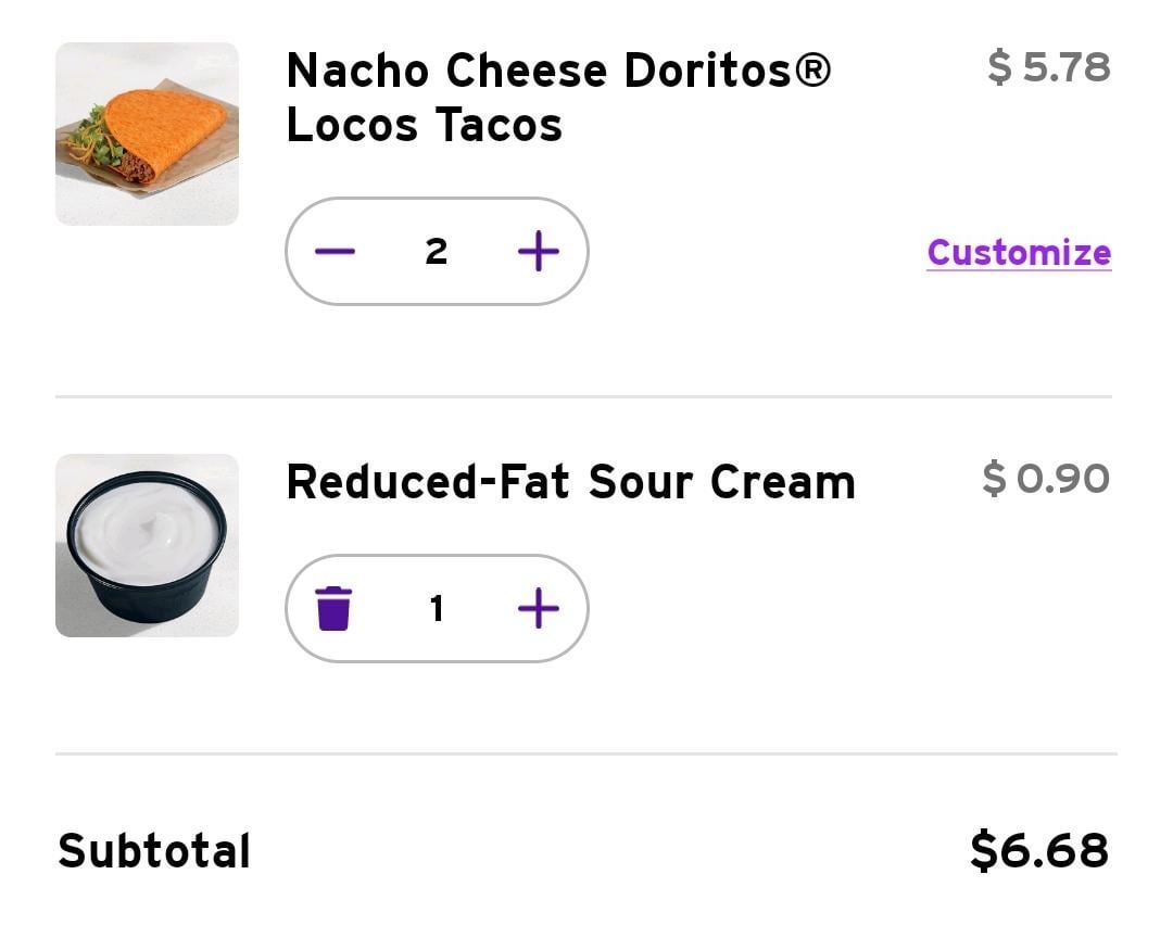 Instead of two DLT's Supreme I just order two normal DLT's with a side of sour cream. It's a Lil bit cheaper, not by much but it adds up.by Grey59Militia taco bellWrite A CommentYou must be logged in to post a comment.