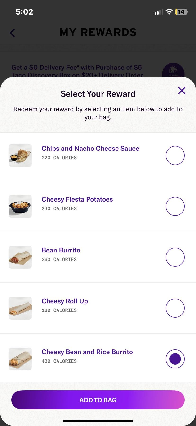 Explain taco bell? I try to redeem my reward to get a free chosen item for earning points from receipts and i don’t even get to use them. It won’t let me add it to my order i’m trying to place.