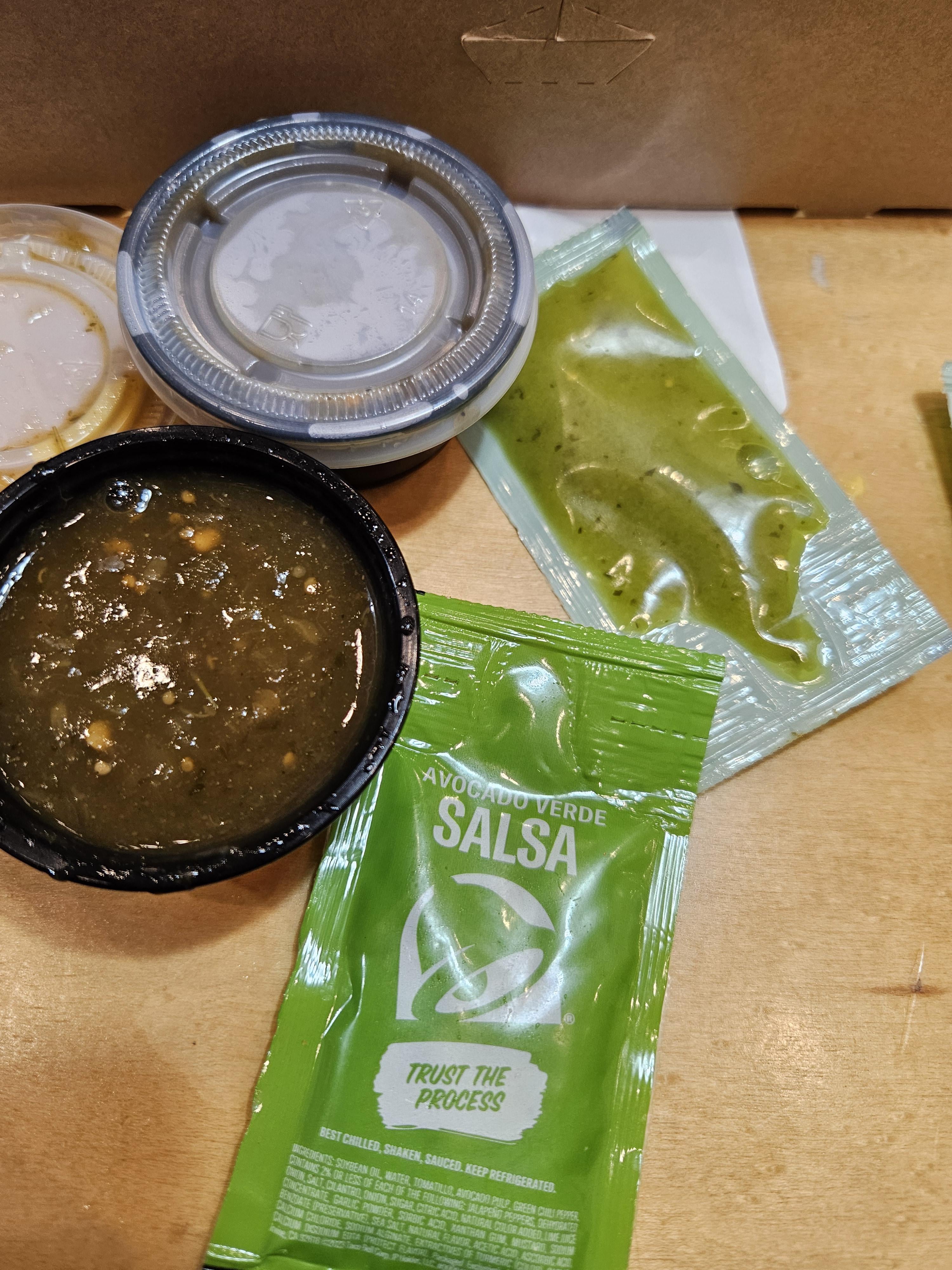 I love green sauce lol.by Square-Elevator-4371 taco bellWrite A CommentYou must be logged in to post a comment.