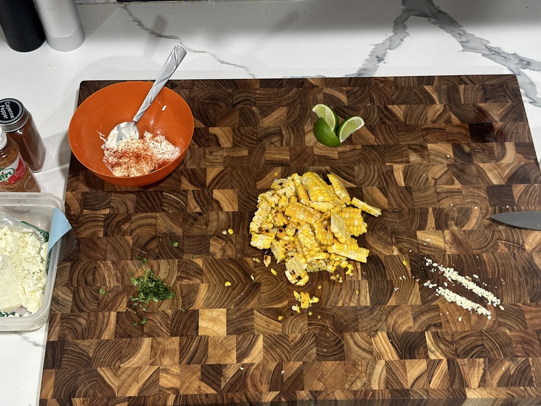 looks good, maybe i’m not used to gourmet food but authentic trolelote or esquite or elote en vaso doesnt have any parsley/cilantro, also the lemon gets juiced in it. you can also use a fork or wooden stick on the cob and brush the condiments on and eat it like that.