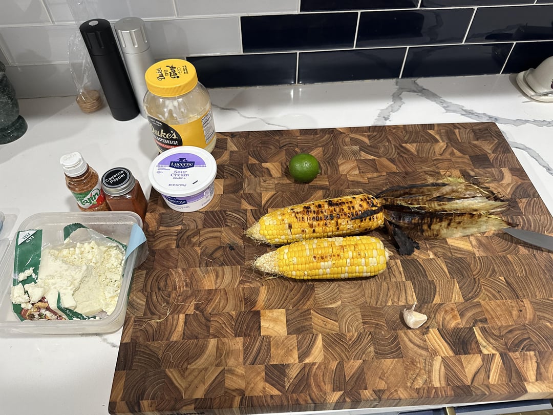 Looks good, I’d suggest cooking them directly in the pot next time, if only just to compare. Add butter, the raw corn and epazote, if it’s easy enough to get. Salt to taste and cook until crispy and golden, then add whatever you feel like, mayo, lime juice, chile piquín, chopped green chili, whatever you like.
