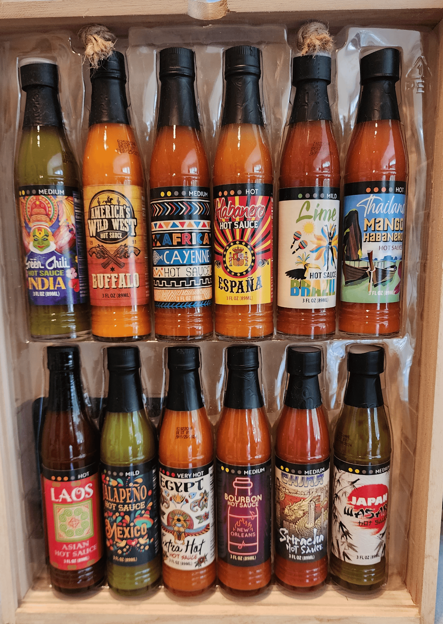 I got this at Costco. They were all pretty mediocre heat, one or two really good flavors. The Japanese Wasabi sauce is a crime against nature and the pallette, though.