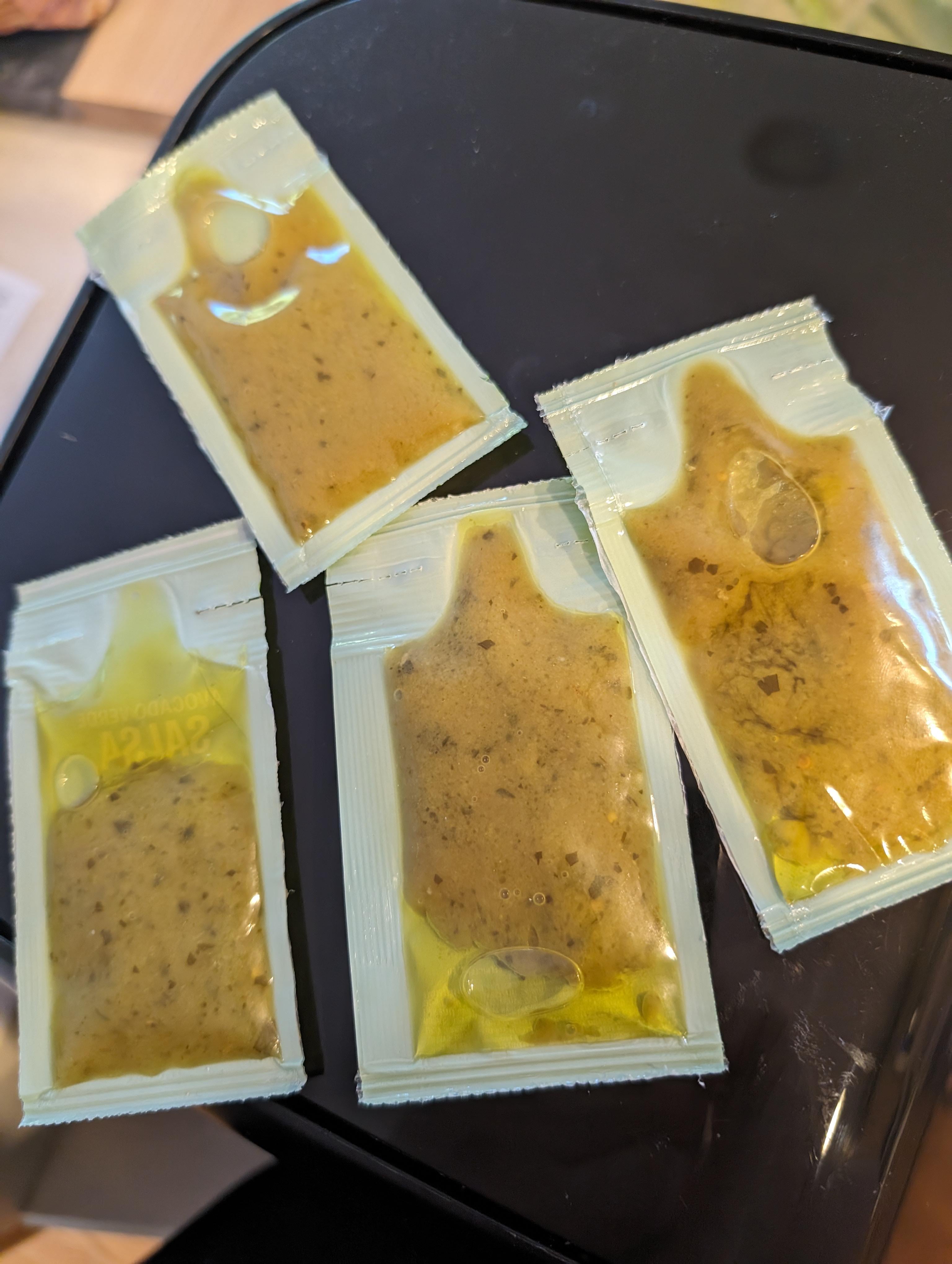 I got a couple of the extra avocado Verde sauce packets, so I can use them on food at home.