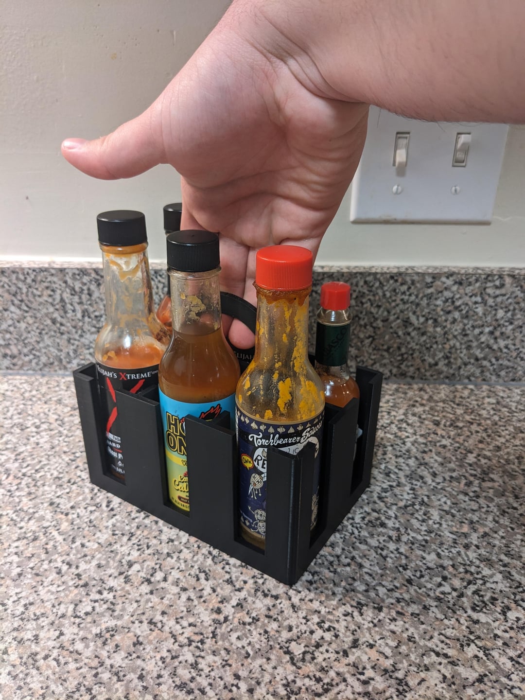 3D printed hot sauce caddy (STL link in comments) by Ok_Ladder358 hot sauceSauceWrite A CommentYou must be logged in to post a comment.