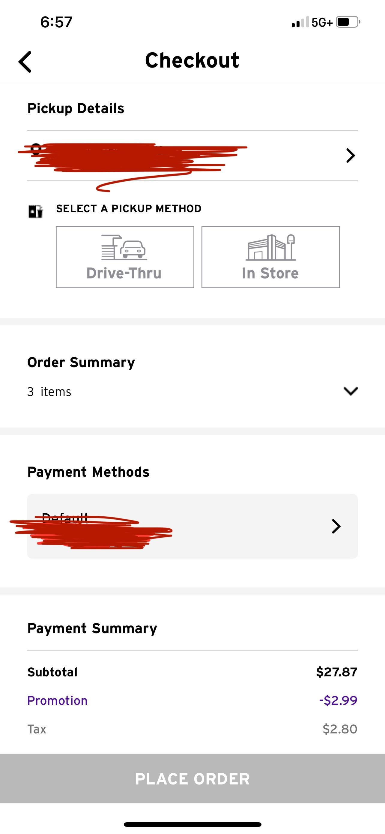 I selected the store and added my payment method and the app still isn’t letting me select drive thru or in store for online order pickup. I tried reinstalling it and re-entering my credit card, as well as scrapping the order and starting again but no dice.