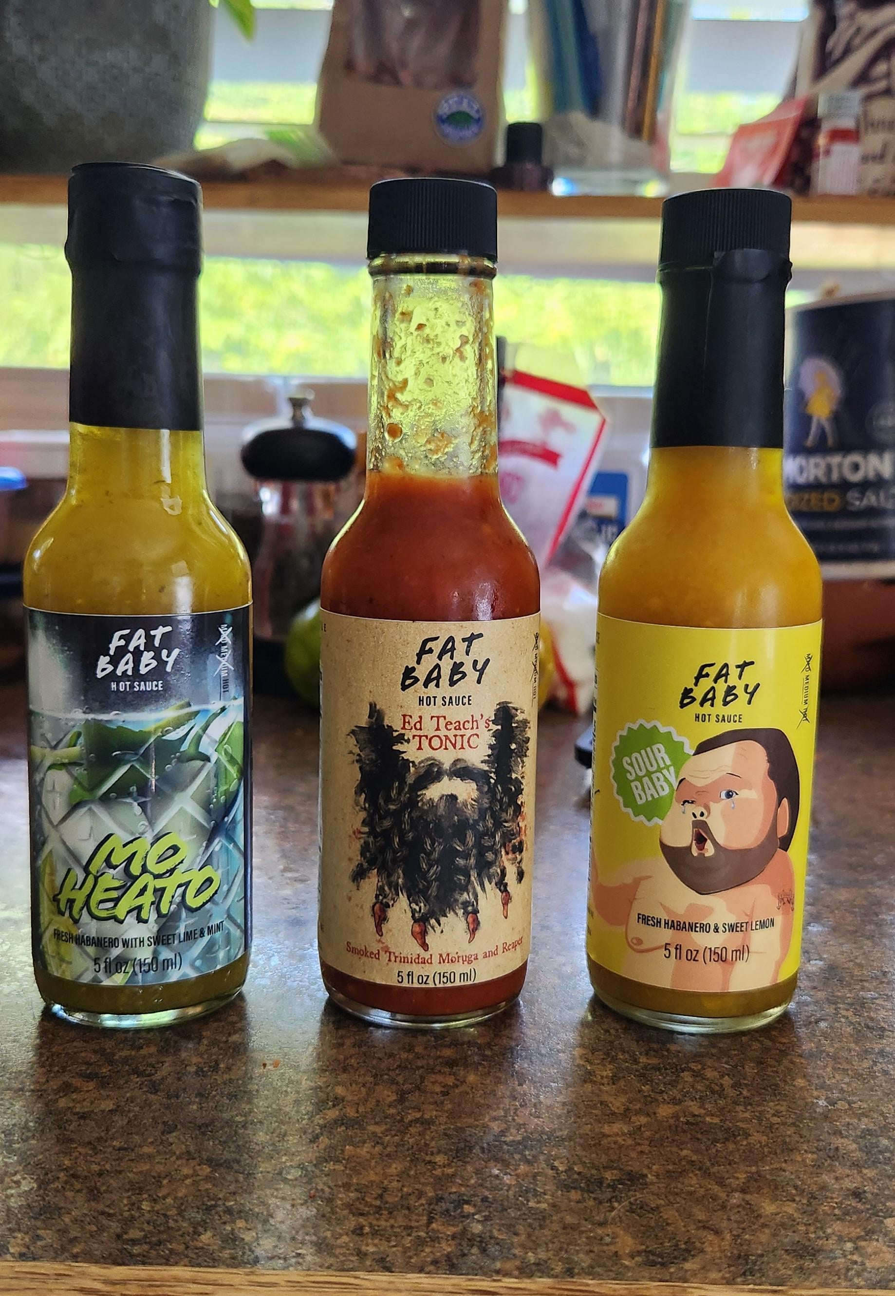 These are some of my favorite local sauces from Fat Baby Hot Sauce. I was at a farmers market and was able to taste every single sauce in their lineup and they were all amazing in their own ways. All of them are on the chunkier side and have a great texture that adds to stuff like tacos and burgers. Ed Teach's Tonic is my favorite, and the most spicy of all of them plus the smoked Scorpion pepper brings a huge dose of umami and really rounds it out before the Reaper heat rolls in nice and easy. Highly recommend! They do sell these online too.