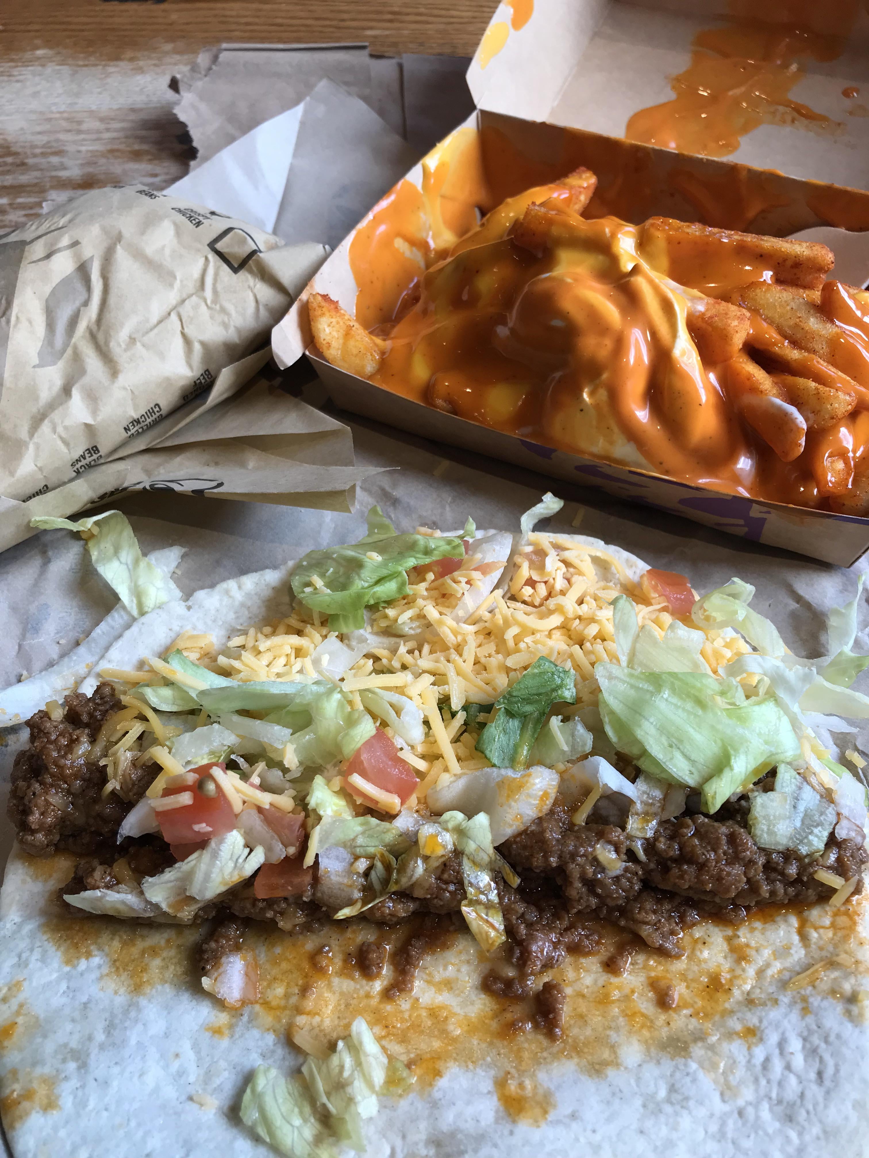 2 soft taco Supremes, Topped Fries with nacho cheese, sour cream and tons of Lava 🤤 ty 🌮 🔔