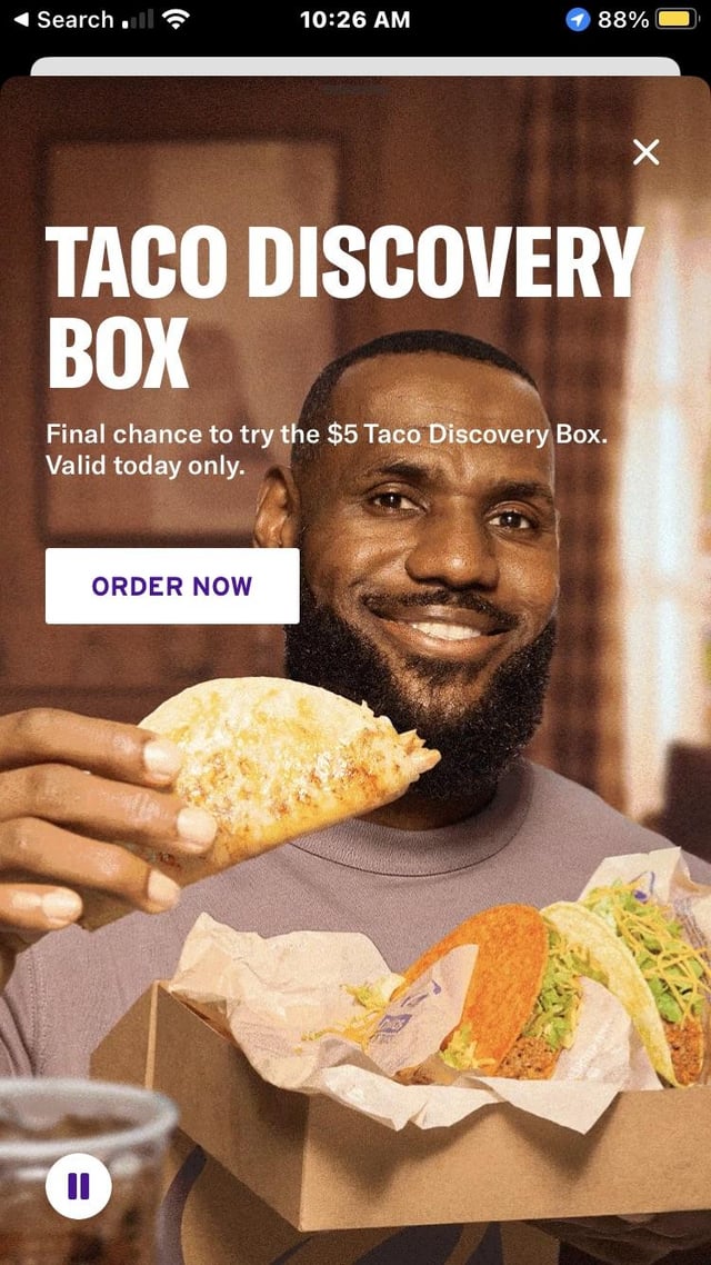 Reminds me of that lady Gaga thing with Kanye. The fuck does lebron know about taco bell this guy provably used his personal chef the same amount as Taylor swift and her private jet