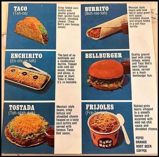 Pulled straight from the Taco Bell history page: āGlen Bell opens his first Taco Bell restaurant in Downey, CA, serving what his customers called 'Tay-Kohs.'" š