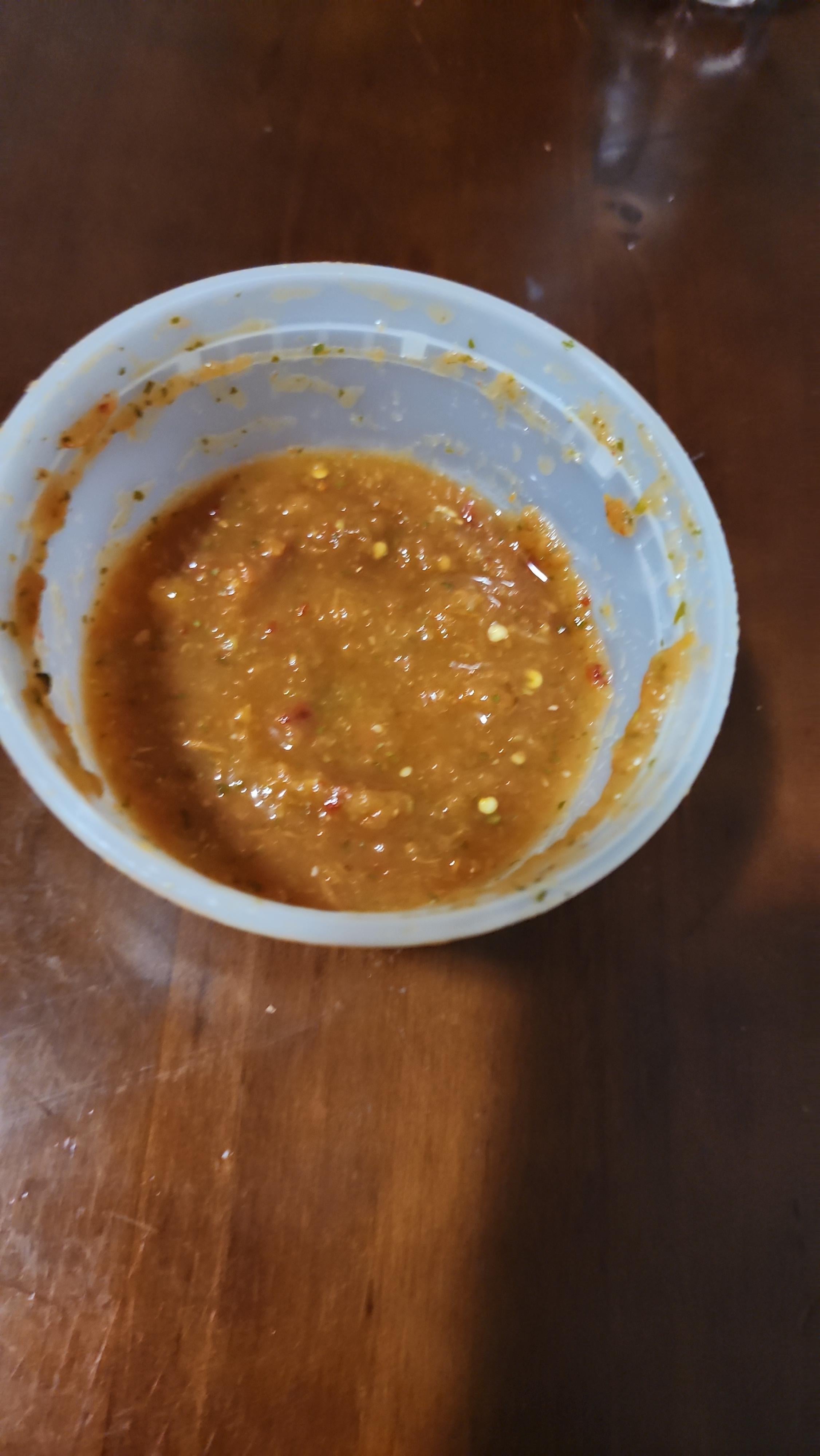 Recipe is 3 red jalapeño, 2 Serrano, 7 roma tomatoes, 5 cloves garlic, half large red onion all boiled in a pot. In blender throw half chicken bullion cube, half head of cilantro, 1/3 cup bitter orange juice, 1-2 squeezed lime juice, handful of chili de arbol, 2 to 3 ancho and 2 guajillo, throw in boiled veggies and blend until desired consistency