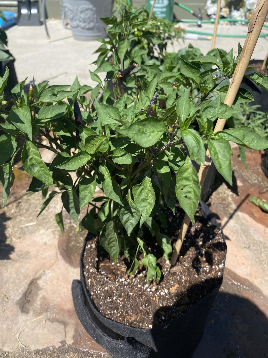 Pepper 2: very bushy pepper that has put out a lot of fruit. The peppers are small and banana shaped but much wider at the head