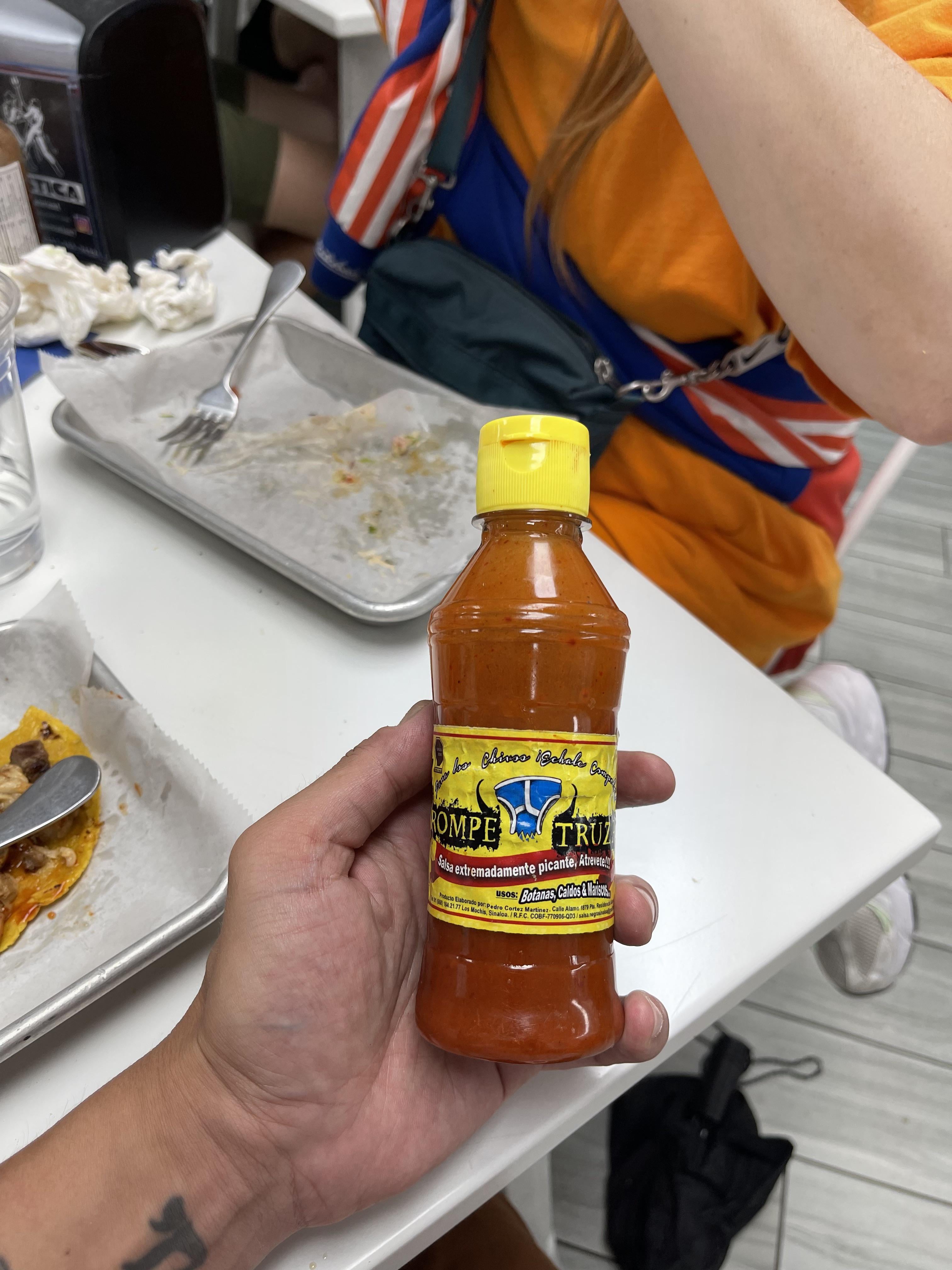I wasnโ€™t really paying attention to the labels and began the taste test by squeezing out a hefty dollop of this onto my spoon. The color scheme of the label and the color of the sauce made me think it would be mild like Valentina โ€” it was not. Immediate heat but awesome flavor. Took me by surprise!