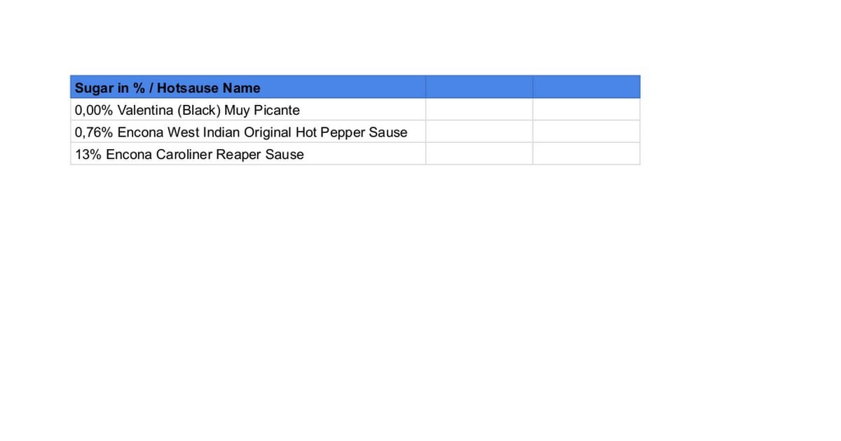 I startet making a List of Sugar content in Hotsauses. Feel Free to add yours too.