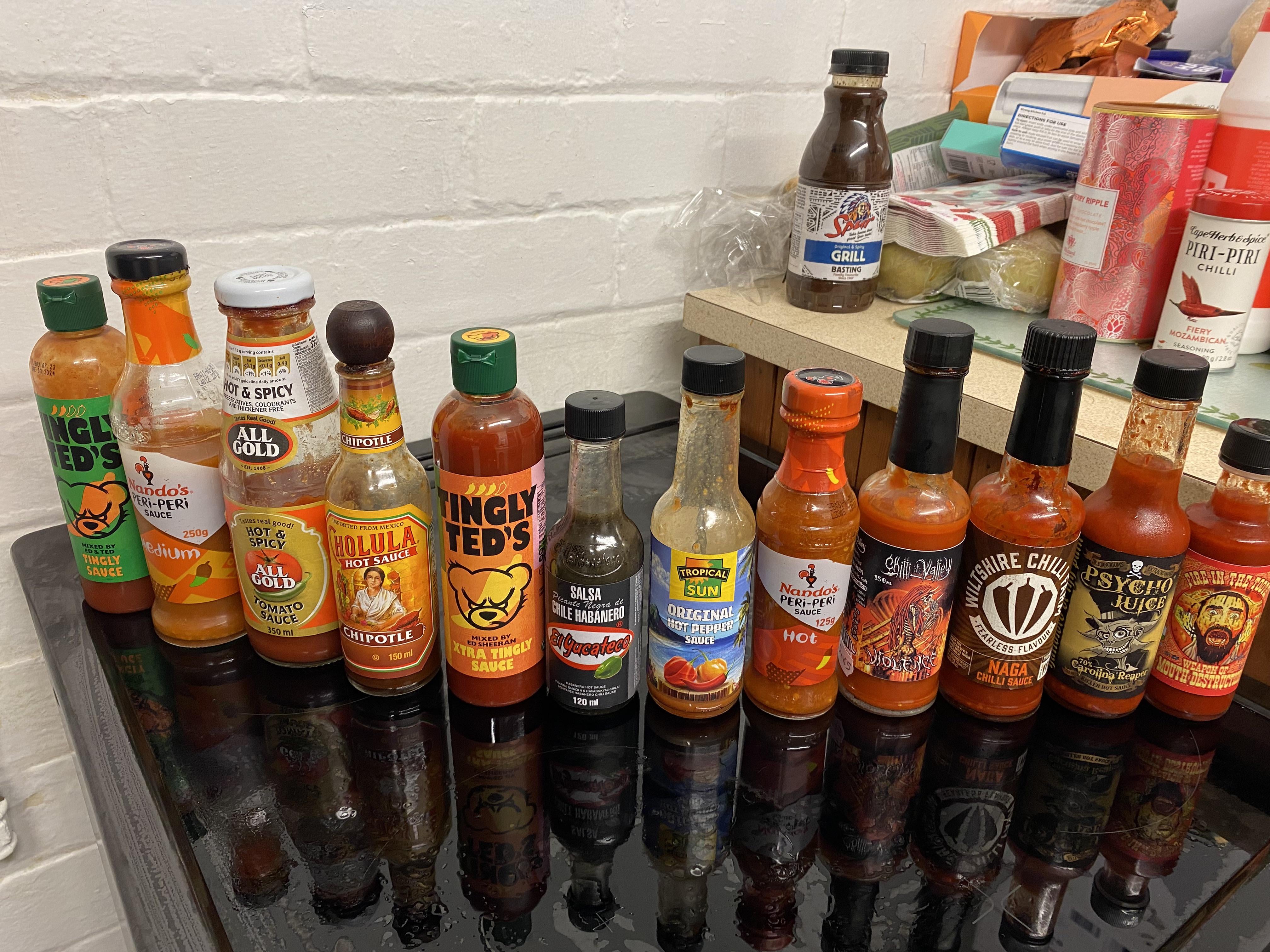 I tried to rank hottest to least hottest right to left but I probably made some mistakes, and I tend to have some sauces with one type of food rather than another so it might affect the heat perception.by shield543 hot sauceSauceWrite A CommentYou must be logged in to post a comment.