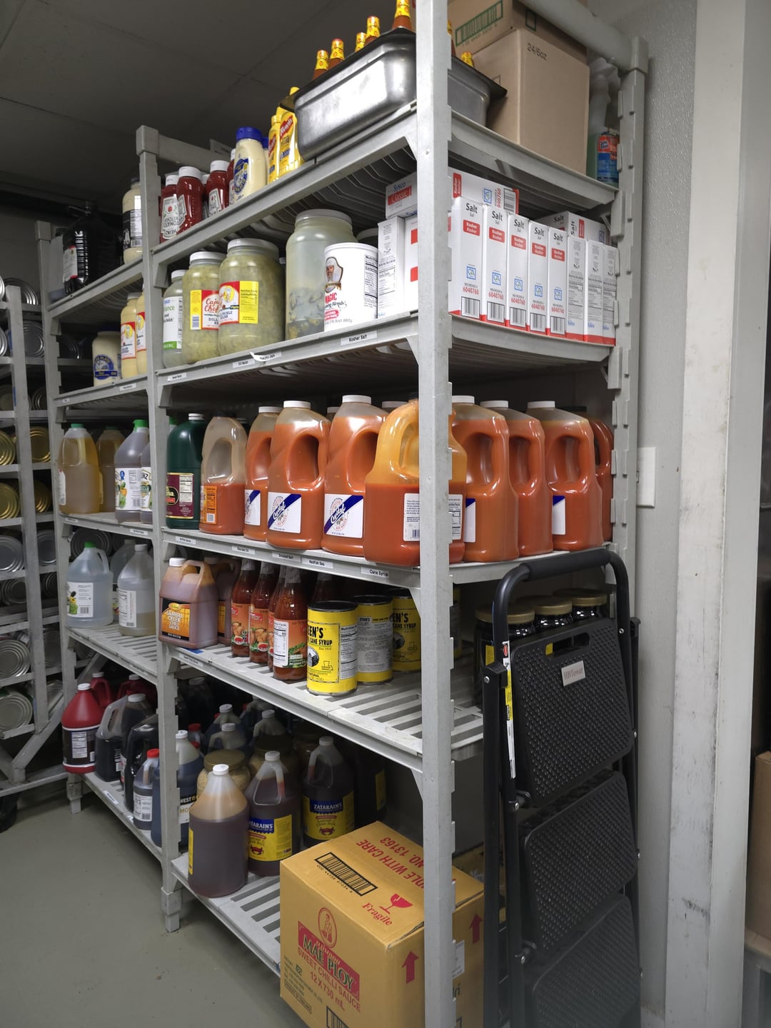 Lousiana Hot Sauce. Gallons of Crystal. Sambar Oelek. Mae Ploy. Sriracha, Franks. Jalapeño Ranch. Plus we make our own.