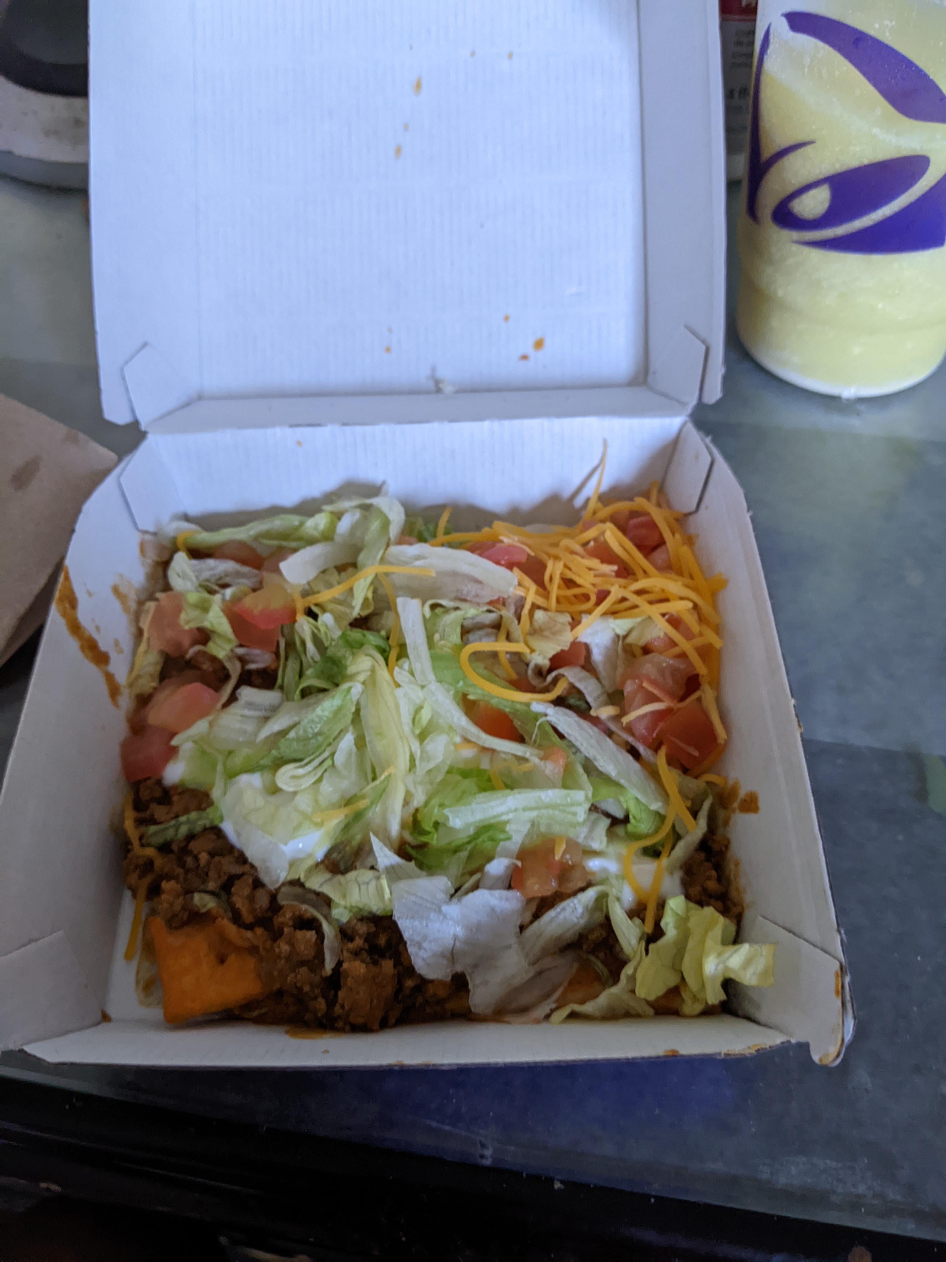 Don't let the picture fool you. This thing was tiny AF. You're better off making your own tostada at home and topping it with a bunch of Cheezits. It would be way better. Half soggy Cheezit cracker on the bottom that feels like it's barely there. I'm glad I tried it for a dollar but no way in hell I'd pay $5 for it. Fuck that.