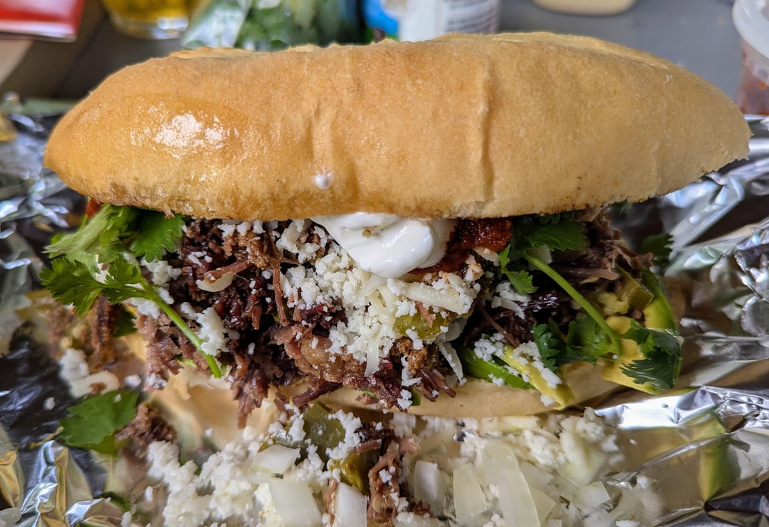 Tortas on the discada (pork belly, suadero, and homemade chorizo) by skgoldings Write A CommentYou must be logged in to post a comment.