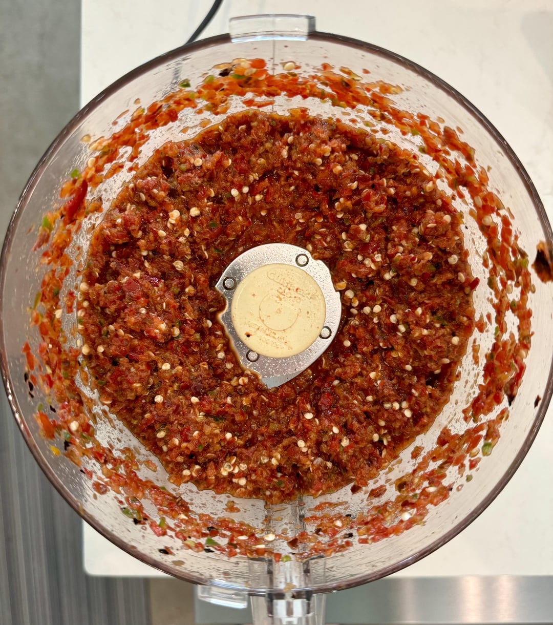 Note: black bits are from a previous mash I was making with charred peppers. Left a few bits in the food processor to add some smokiness.