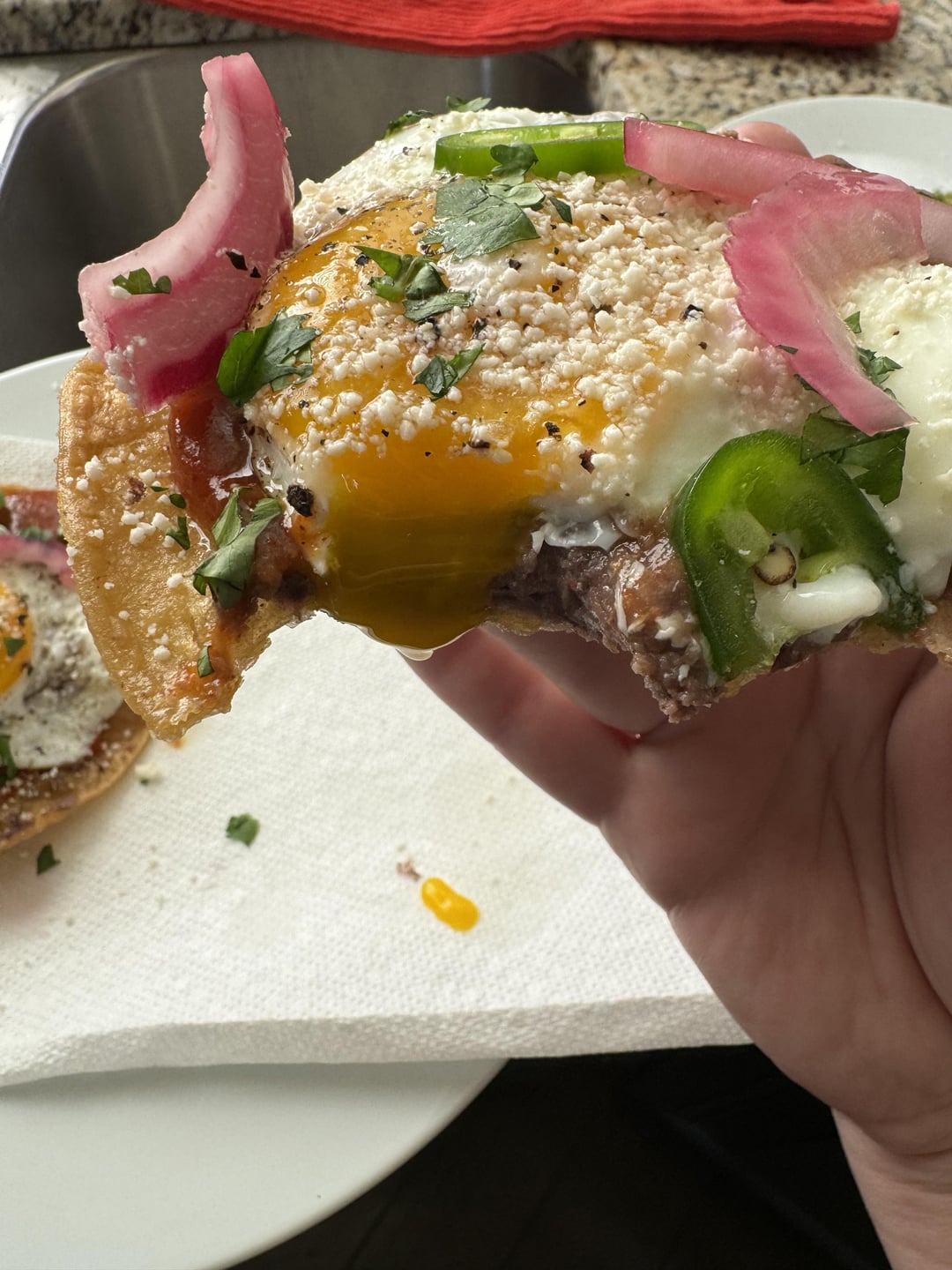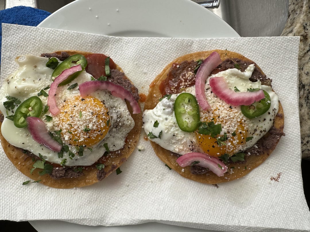 So good. I love Tostadas. Being off and having a chance to make a decent breakfast is so nice. Everything is homemade except the shell. Well I did fry the shell myself. š¤£.by MelissaMich Write A CommentYou must be logged in to post a comment.
