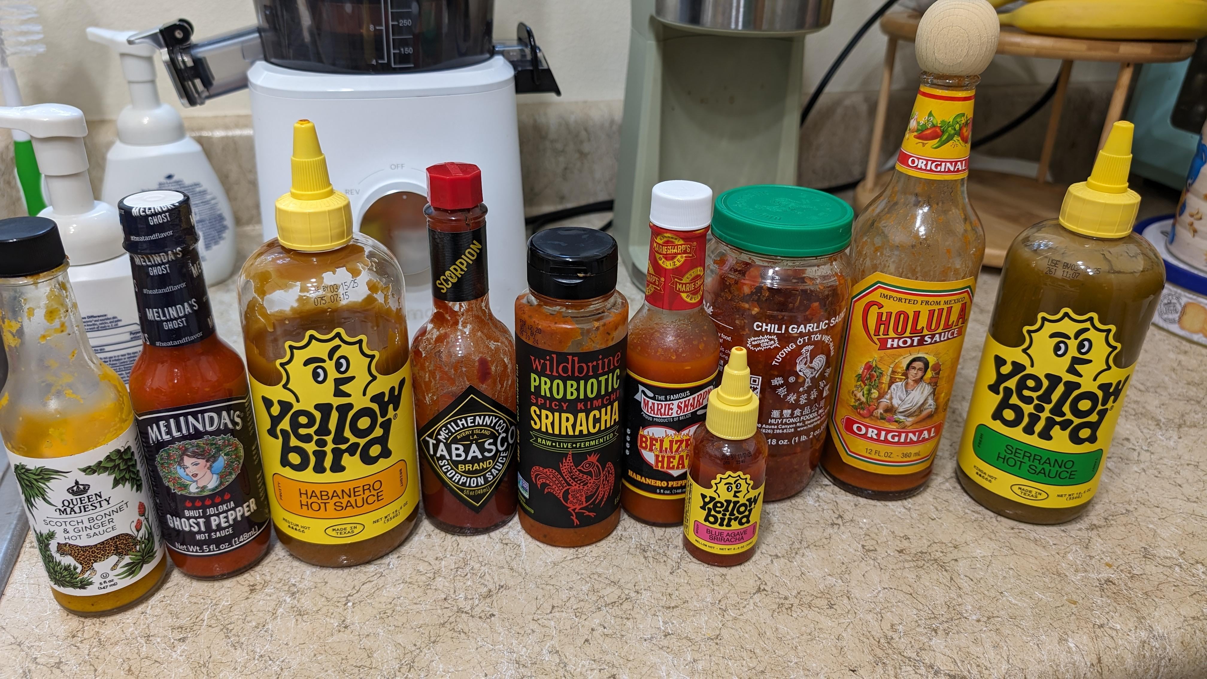 Marie Sharps belizean heat – Good on everything I tried. Medium Spicy. Tastes isn't over powering. Mixes well with other sauces. Mixes well with #2 and #3 and #10 so far. Good all around sauce.