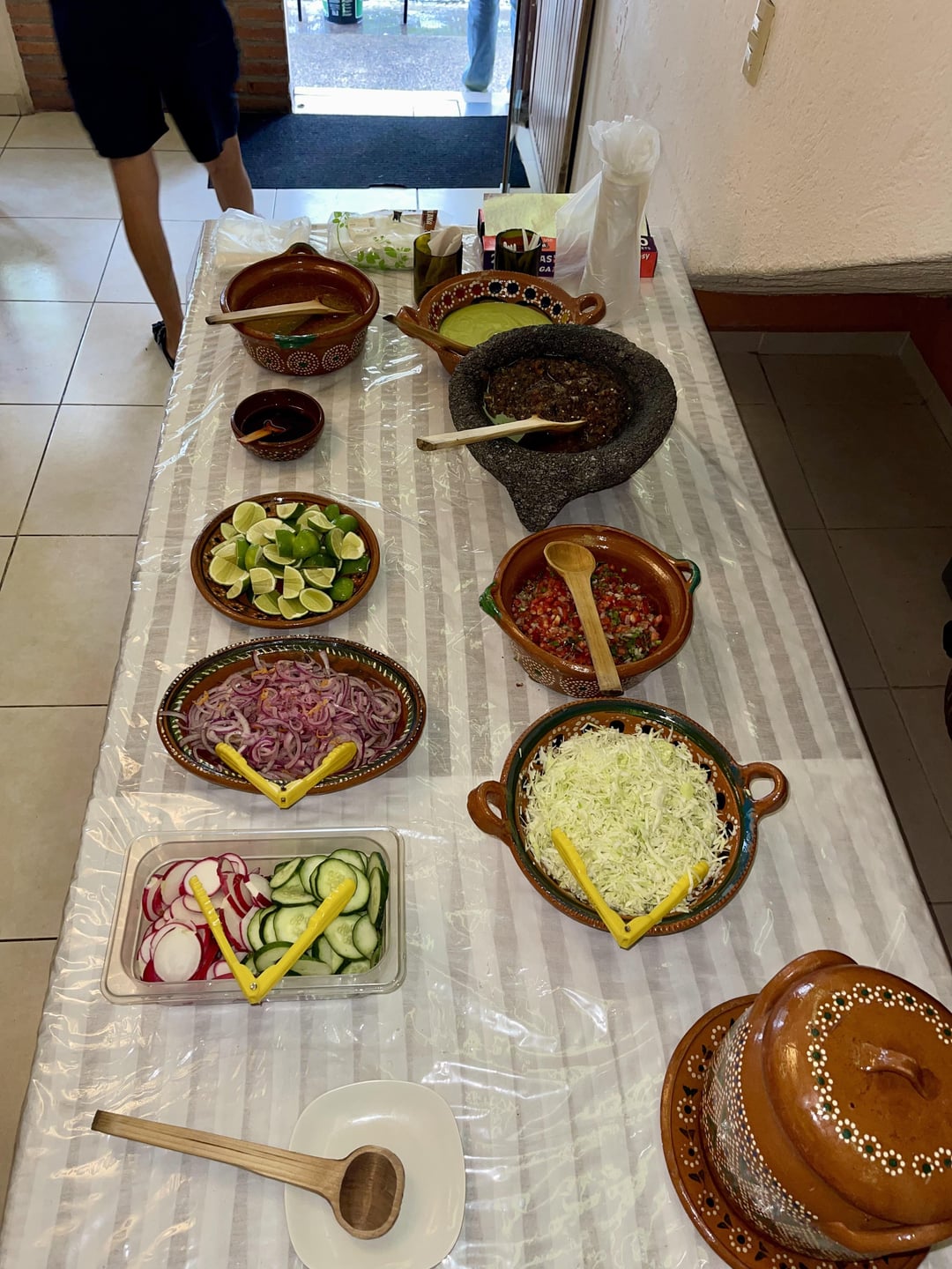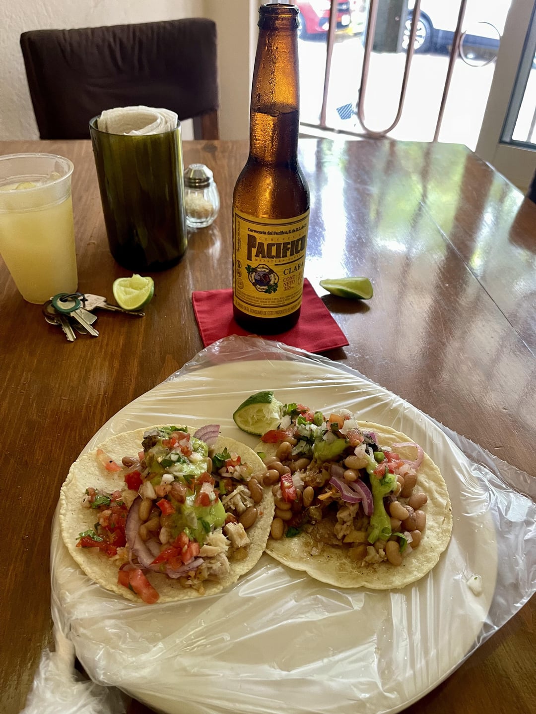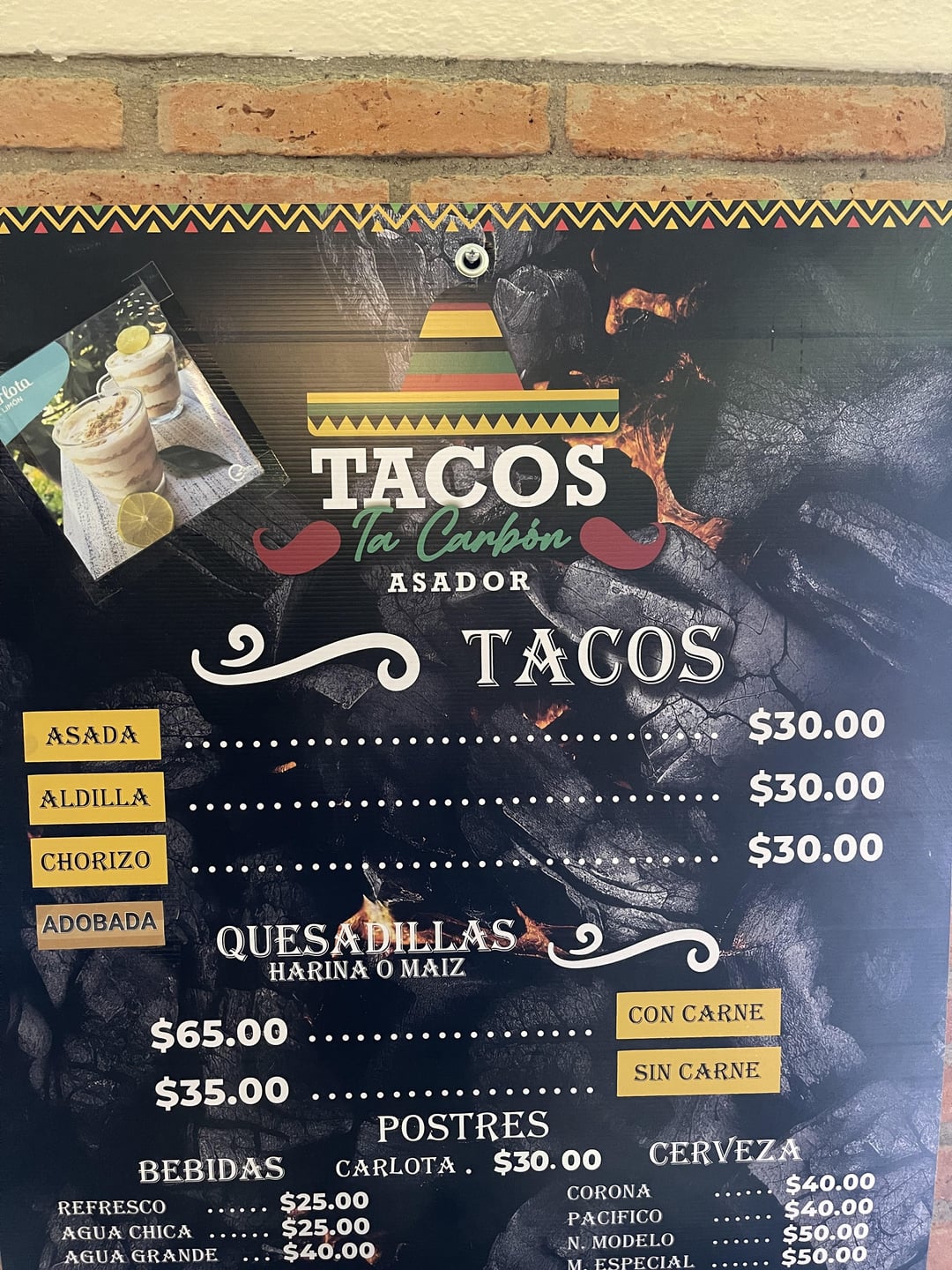 This place was just a random find while driving out of town to head up river. The prices were perfect! The place next door wanted 150p for chileaquilles🙄 They even had a clay pot to keep the beans warm! Some of the best tacos I’ve had so far!