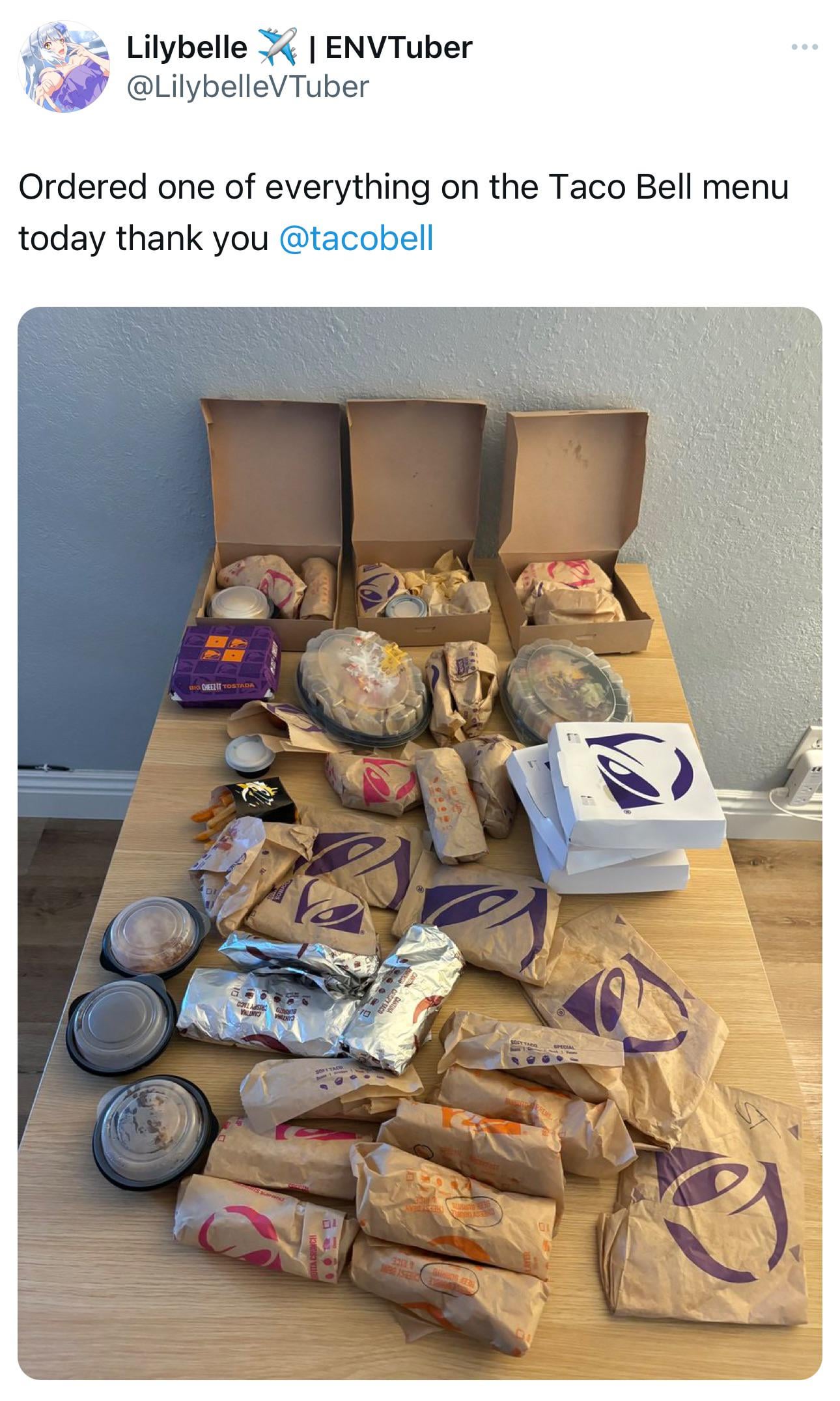 She ordered the whole Taco Bell menuby kanodon taco bellWrite A CommentYou must be logged in to post a comment.