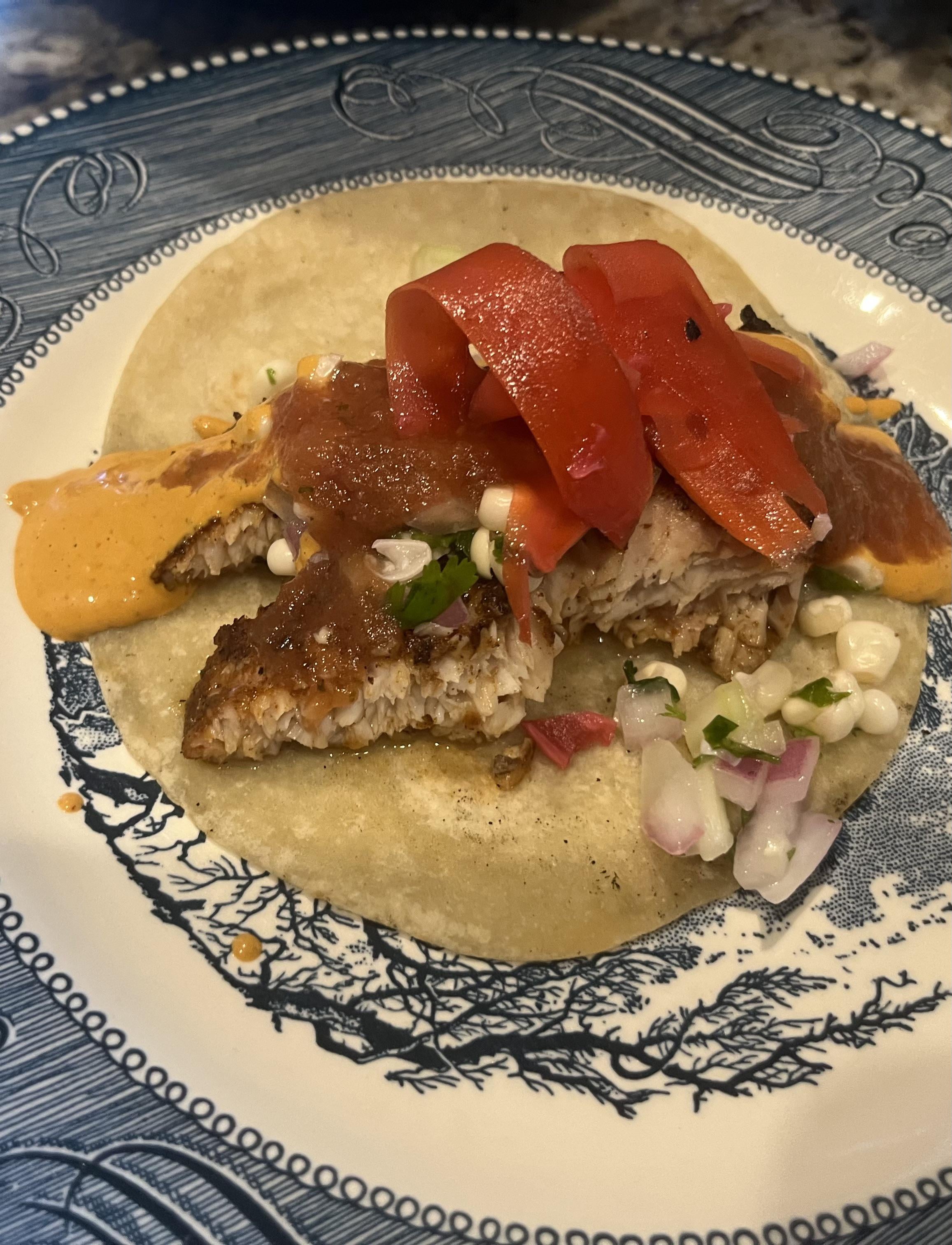 Grilled Mahi / corn salsa with celery, red onion, and cilantro / tomato salsa / chipotle mayo / topped with pickled carrot ribbons.by thewoodworkingchef Write A CommentYou must be logged in to post a comment.