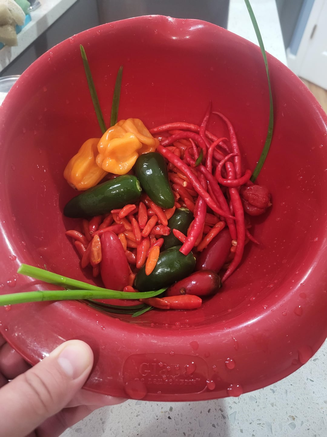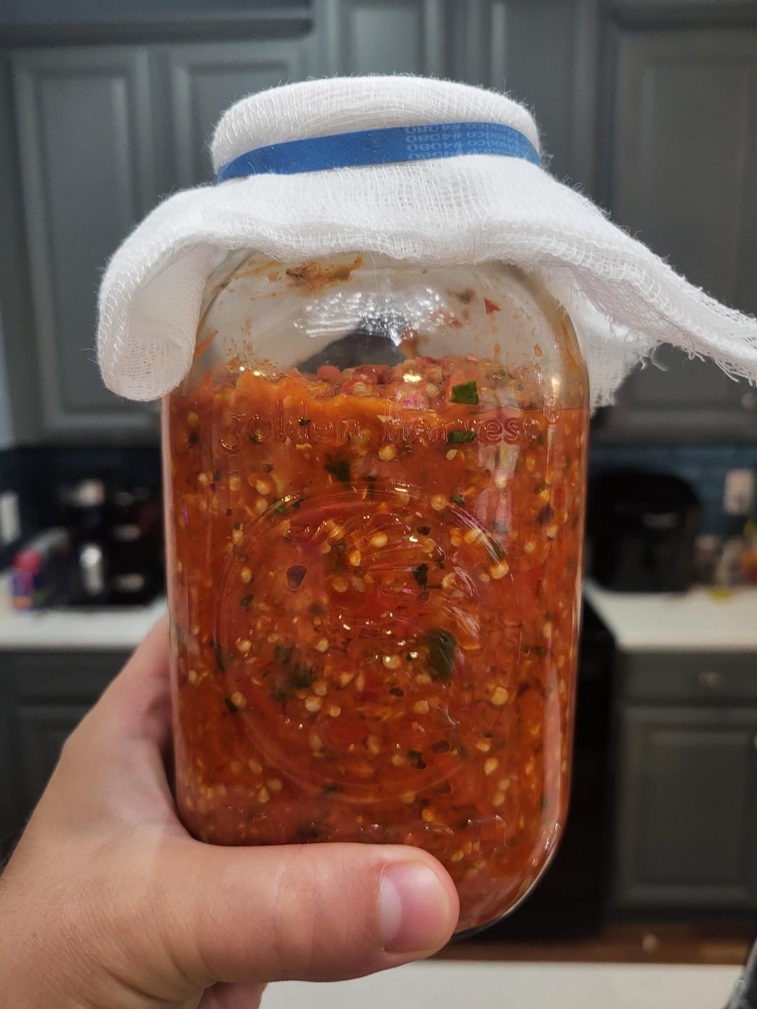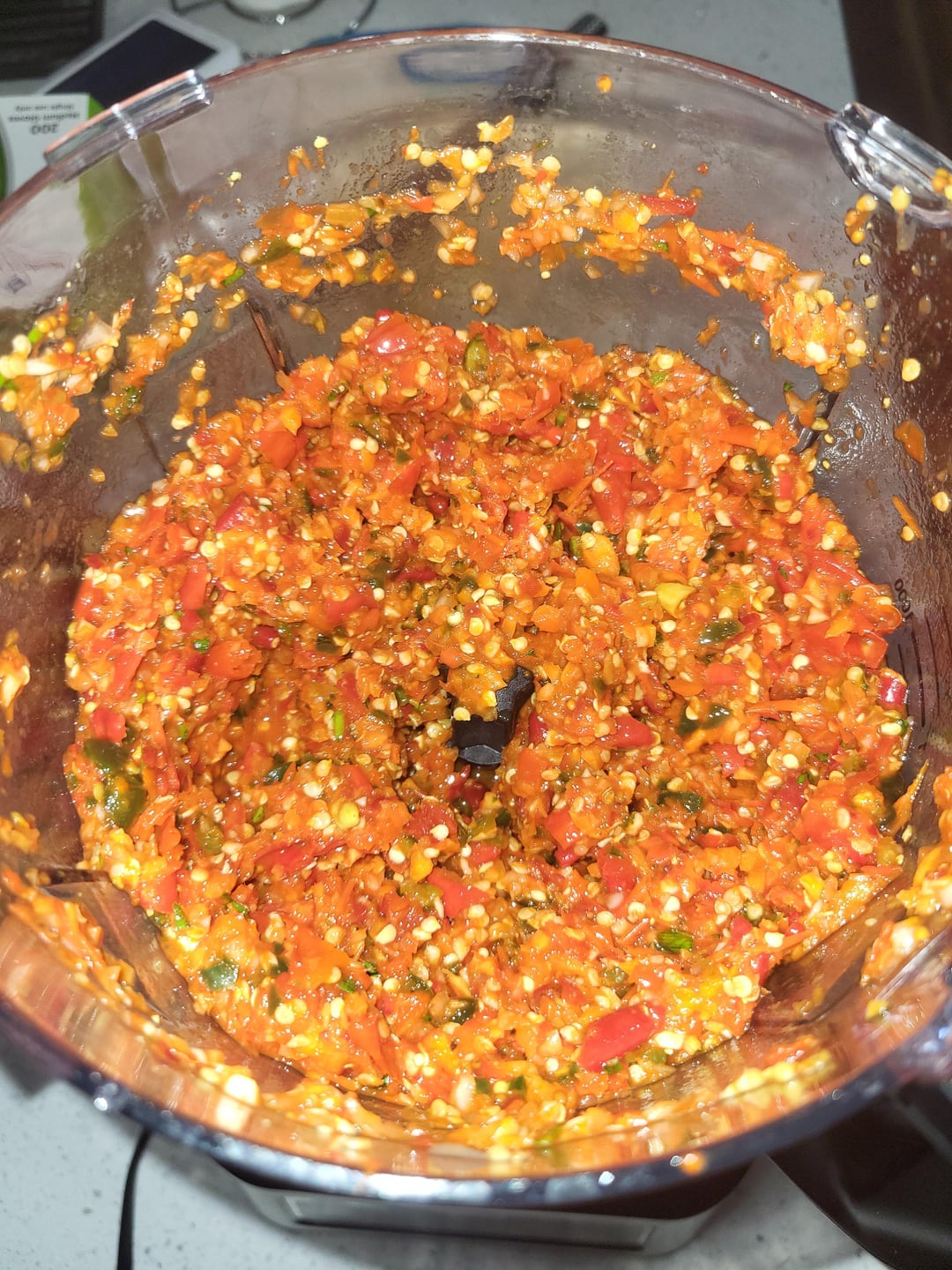 Tobasco, habanero, cayenne, jalapeno, and scotch bonnet suicide mash with society garlic, onion, carrot and seasonings blend outside because baby was sleeping. Im going to let hang out for 48 hours then add vinegar then let hang out for 2 weeks and see whats up. First time attempting sauce so I made sure to throw every pepper in there so i have no real clue how each pepper is affecting the sauce.